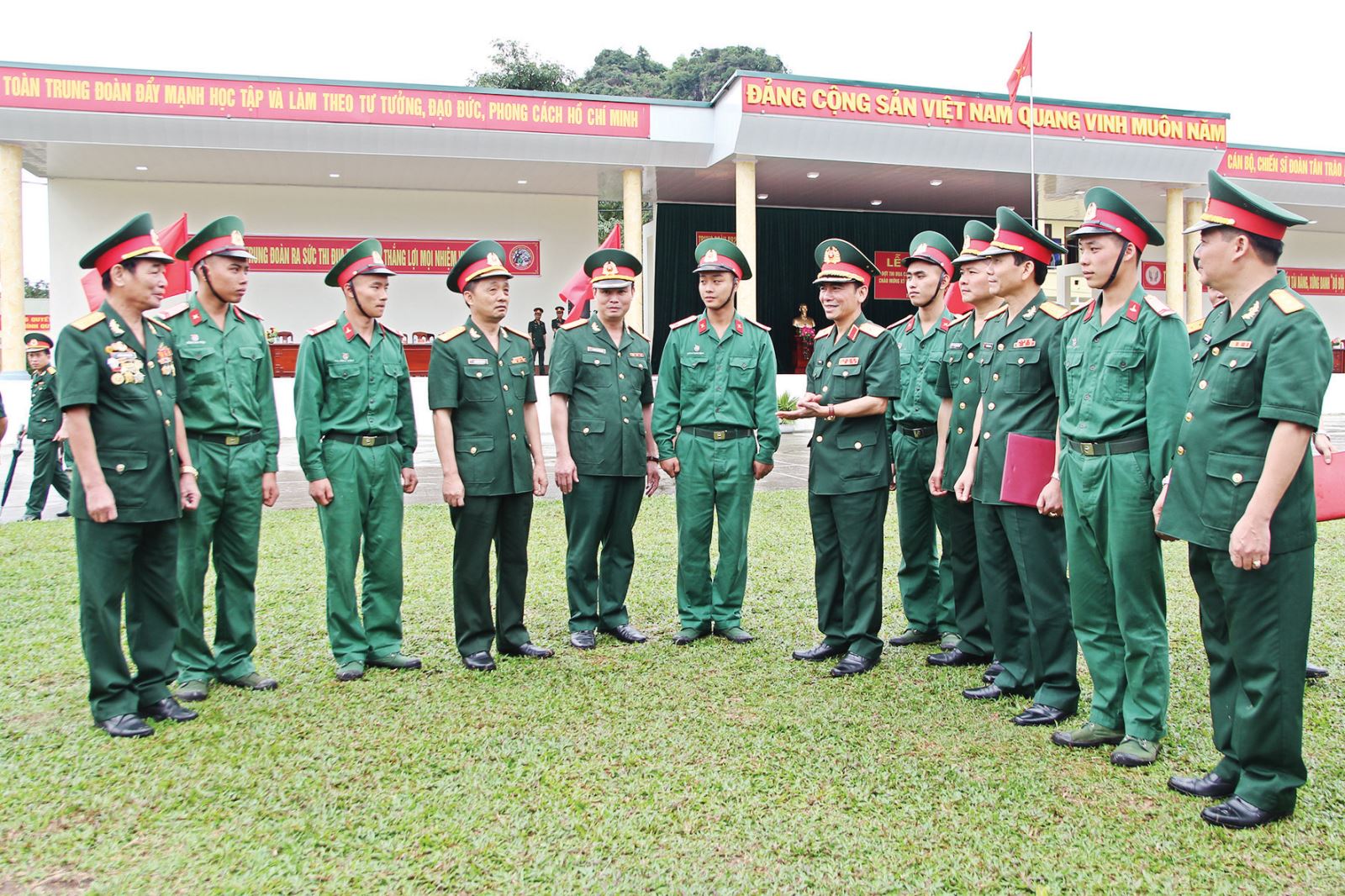 Thiếu tướng Nguyễn Đình Chiêu, Phó chính ủy Quân khu trao đổi với các đại biểu và cán bộ, chiến sĩ Trung đoàn 246, Sư đoàn 346 tại Lễ phát động đợt thi đua đặc biệt “Luyện quân, lập công, quyết thắng”.