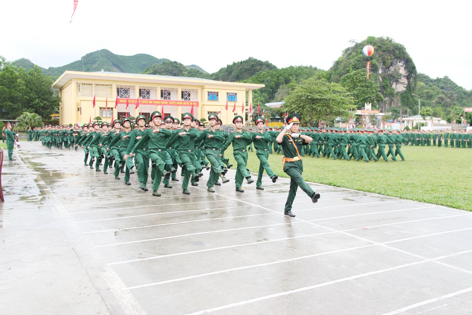 Cán bộ, chiến sĩ đơn vị duyệt đội ngũ tại lễ phát động thi đua.