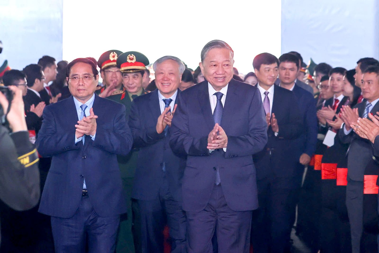 Tổng Bí thư Tô Lâm, Thủ tướng Chính phủ Phạm Minh Chính dự lễ khởi công nhà máy chế tạo chip bán dẫn đầu tiên tại Việt Nam.