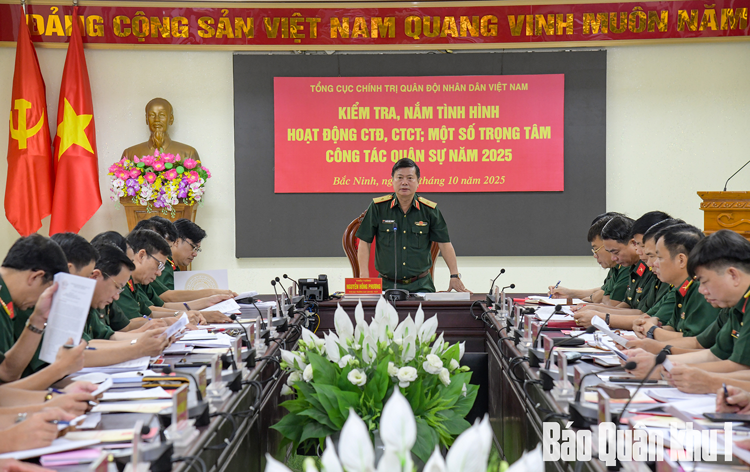 Trong 2 ngày 23 và 24-10, Tổng cục Chính trị (TCCT) thành lập 2 đoàn công tác, đoàn số 1 do Trung tướng Đỗ Xuân Tụng, Phó Chủ nhiệm TCCT làm trưởng đoàn đã tiến hành kiểm tra, nắm tình hình hoạt động công tác đảng, công tác chính trị (CTĐ, CTCT) và một số trọng tâm công tác quân sự năm 2025 đối với Ban Chỉ huy phòng thủ khu vực 4 – Hạp Lĩnh (Bộ CHQS tỉnh Bắc Ninh); đoàn công tác số 2 do Thiếu tướng Nguyễn Hồng Phương, Phó Cục trưởng Cục Cán bộ (TCCT) làm trưởng đoàn, tiến hành kiểm tra đối với cơ quan Bộ CHQS tỉnh Bắc Ninh, Trung đoàn 833 (Bộ CHQS tỉnh Bắc Ninh) và Lữ đoàn Tăng thiết giáp 409.