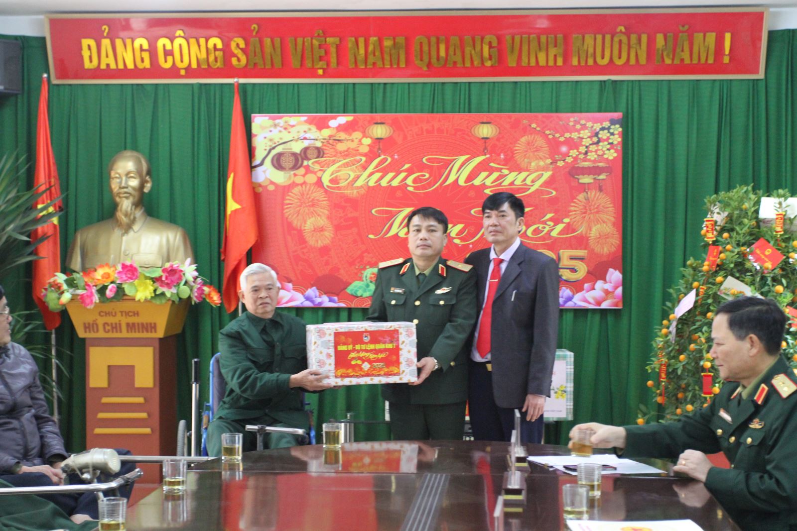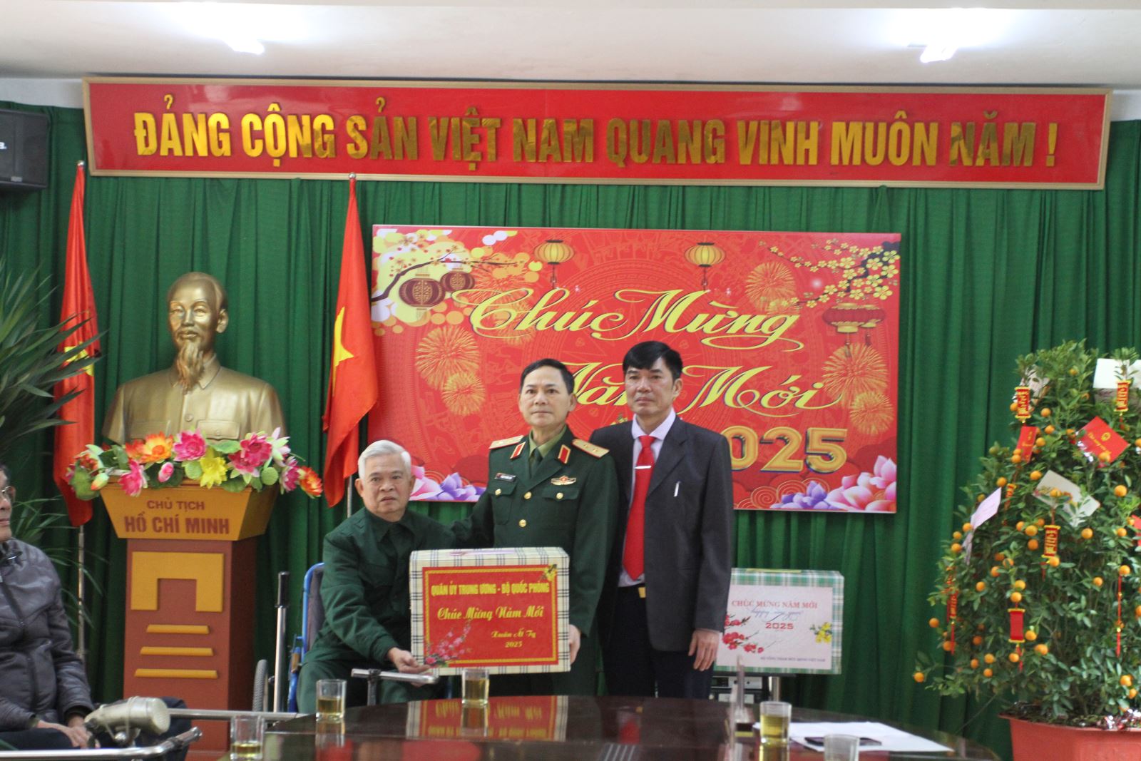 Thay mặt lãnh đạo Bộ Tổng Tham mưu Quân đội nhân dân Việt Nam, Trung tướng Phạm Trường Sơn trao quà tặng và gửi lời chúc các thương binh, bệnh binh và tập thể, cán bộ, công nhân viên Trung tâm Điều dưỡng thương binh Thuận Thành đón Tết vui tươi, đầm ấm.