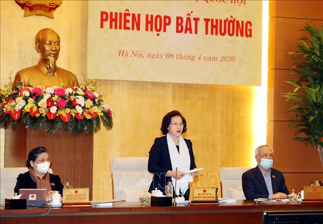 Sáng 8/4, tại Nhà Quốc hội, theo đề nghị của Chính phủ, Ủy ban Thường vụ Quốc hội đã họp phiên bất thường để cho ý kiến về các biện pháp hỗ trợ người dân gặp khó khăn do đại dịch COVID-19. Chủ tịch Quốc hội Nguyễn Thị Kim Ngân chủ trì phiên họp.