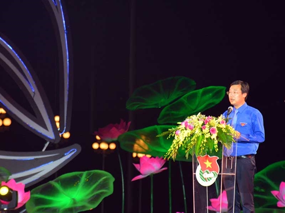Bí thư thứ nhất Trung ương Đoàn Lê Quốc Phong phát biểu tại chương trình.