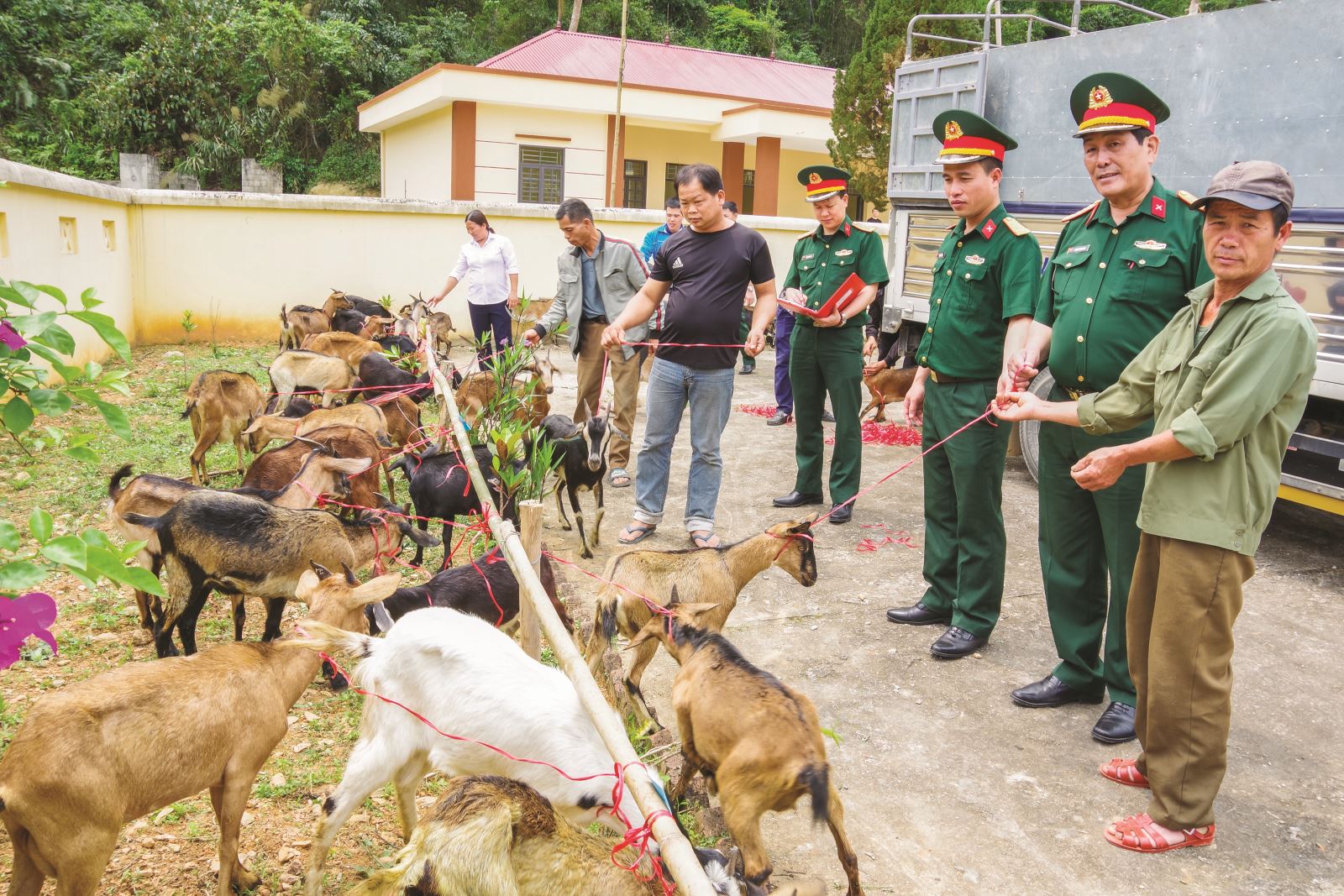 Đoàn KT-QP 338 bàn giao dê giống cho nhân dân theo Dự án Chương trình mục tiêu quốc gia phát triển kinh tế - xã hội vùng đồng bào dân tộc thiểu số và miền núi. Ảnh: VƯƠNG TƯ