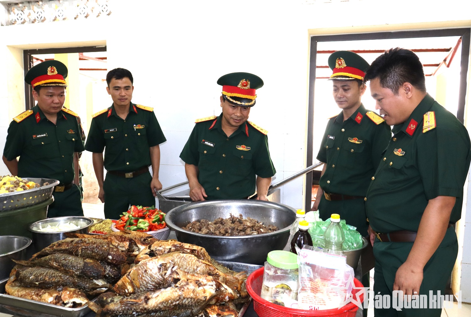 Đoàn công tác nắm tình hình tổ chức bữa ăn, đánh giá công tác bảo đảm hậu cần tai Tiểu đoàn 1, Trung đoàn 246 (Sư đoàn 346).