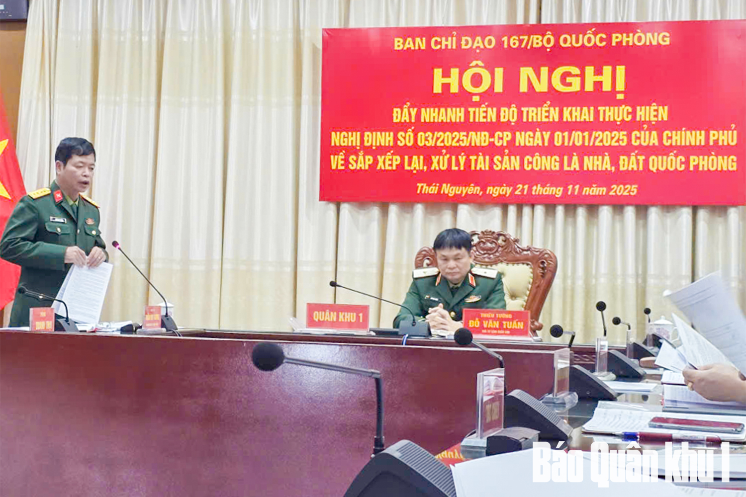 Thời gian qua, thực hiện Nghị định số 03/2025/NĐ-CP ngày 1-1-2025 của Chính phủ về sắp xếp lại, xử lý tài sản công là nhà, đất quốc phòng, Ban Chỉ đạo 167 Quân khu 1 đã quán triệt đầy đủ các văn bản chỉ đạo của Bộ Quốc phòng; trực tiếp ban hành các văn bản hướng dẫn, đôn đốc đẩy nhanh tiến độ và hướng dẫn triển khai thực hiện với tất cả các cơ quan, đơn vị trong toàn Quân khu, bảo đảm đúng tiến độ các mốc thời gian và chất lượng theo kế hoạch của Bộ.