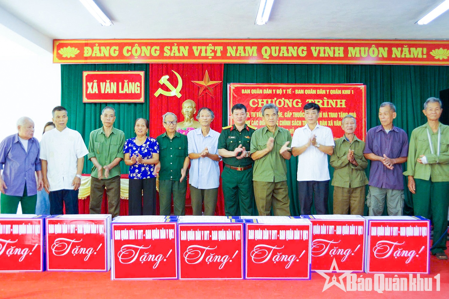 Đại tá Nguyễn Văn Khang, Phó Chủ nhiệm Hậu cần-Kỹ thuật Quân khu tặng quà đối tượng chính sách tại xã Nam Tuấn, tỉnh Cao Bằng. Ảnh: ĐỨC YÊN
