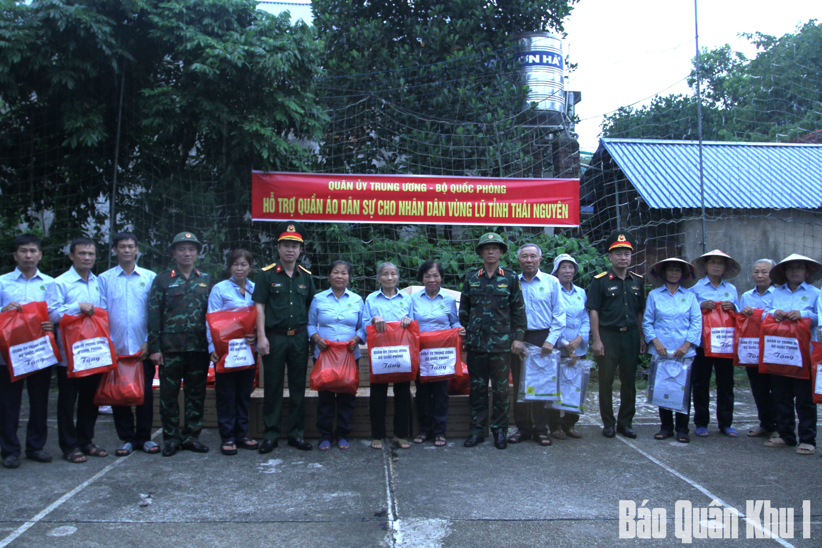 Thực hiện chỉ đạo của Bộ Quốc phòng về hỗ trợ nhân dân vùng bị ảnh hưởng bởi thiên tai, bão lũ, Quân khu 1 đã xây dựng kế hoạch tiếp nhận, cấp phát 20.000 bộ quần áo dân sự do Tổng cục Hậu cần - Kỹ thuật sản xuất, nhằm kịp thời chia sẻ khó khăn, động viên nhân dân sớm ổn định cuộc sống. Theo đó, số lượng quần áo được phân bổ về 4 tỉnh gồm: Thái Nguyên (8.000 bộ), Bắc Ninh (6.000 bộ), Lạng Sơn (3.000 bộ), Cao Bằng (3.000 bộ). Trong đó có 15.000 bộ quần áo nam và 5.000 bộ quần áo nữ. Các Bộ CHQS tỉnh trên địa bàn Quân khu sẽ là đơn vị tiếp nhận và tổ chức cấp phát đến tay người dân vùng lũ xong trước ngày 18-10.
