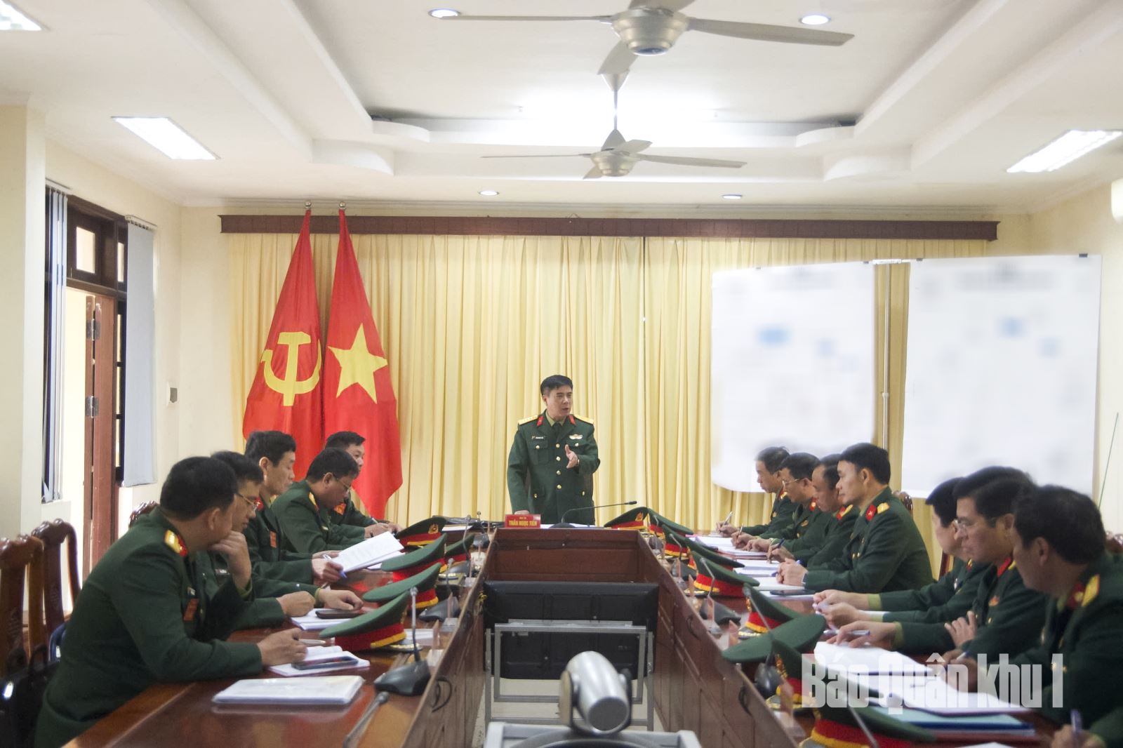 Đại tá Trần Ngọc Tiến, Phó Tham mưu trưởng Quân khu quán triệt, phổ biến, triển khai các nội dung kiểm tra.