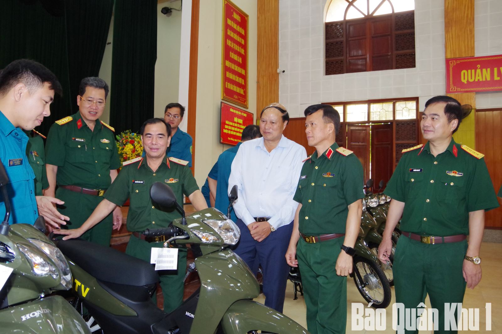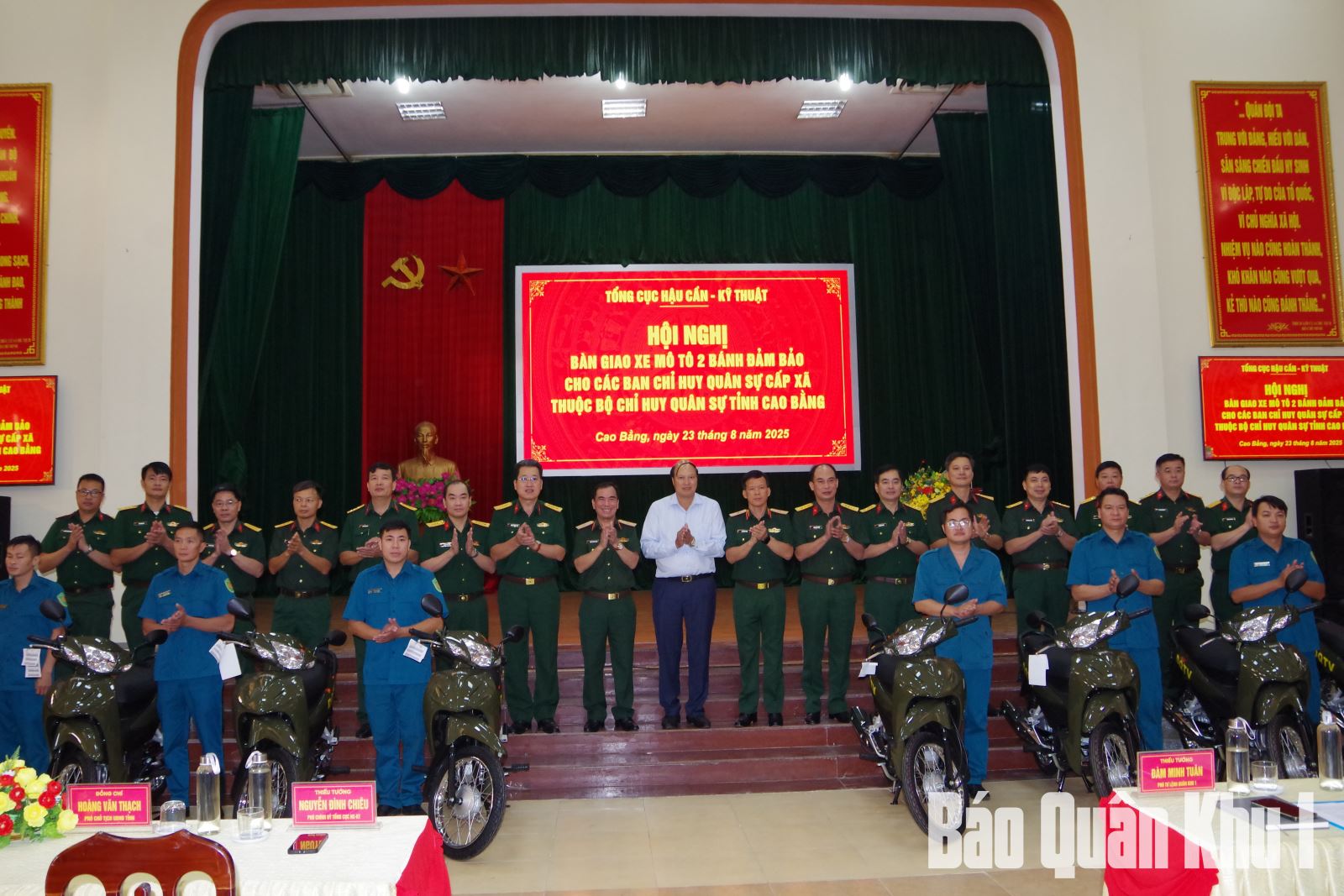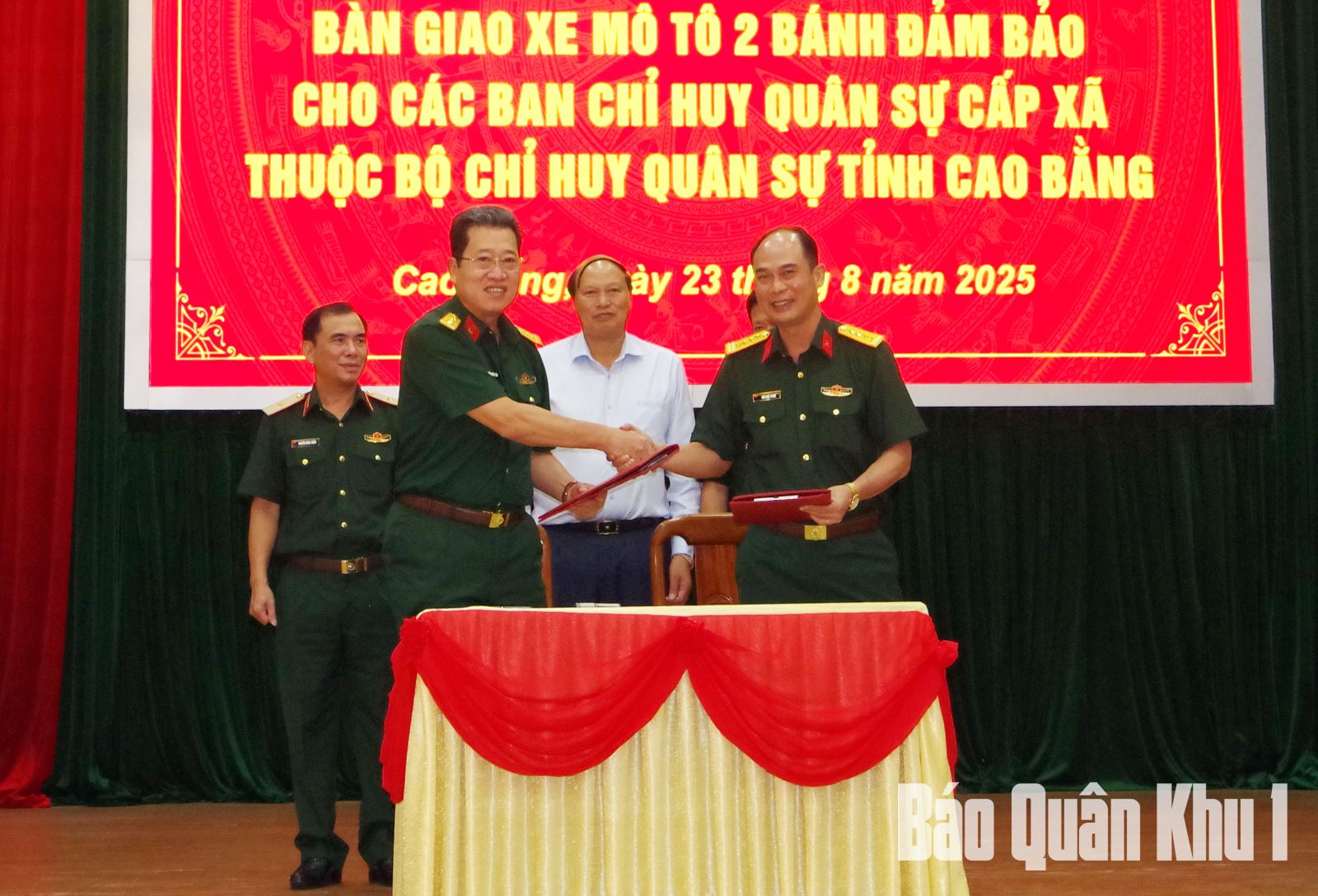 Sáng 23-8, tại Bộ CHQS tỉnh Cao Bằng, đoàn công tác Tổng cục Hậu cần-Kỹ thuật, Bộ Quốc phòng do Thiếu tướng Nguyễn Đình Chiêu, Phó Chính ủy Tổng cục Hậu cần-Kỹ thuật làm trưởng đoàn đã tổ chức bàn giao 112 chiếc xe mô-tô hai bánh cho các Ban CHQS cấp xã thuộc tỉnh Cao Bằng. Dự và chứng kiến lễ bàn giao có Thiếu tướng Đàm Minh Tuân, Phó Tư lệnh Quân khu; đồng chí Hoàng Văn Thạch, Tỉnh ủy viên, Phó Chủ tịch UBND tỉnh Cao Bằng.