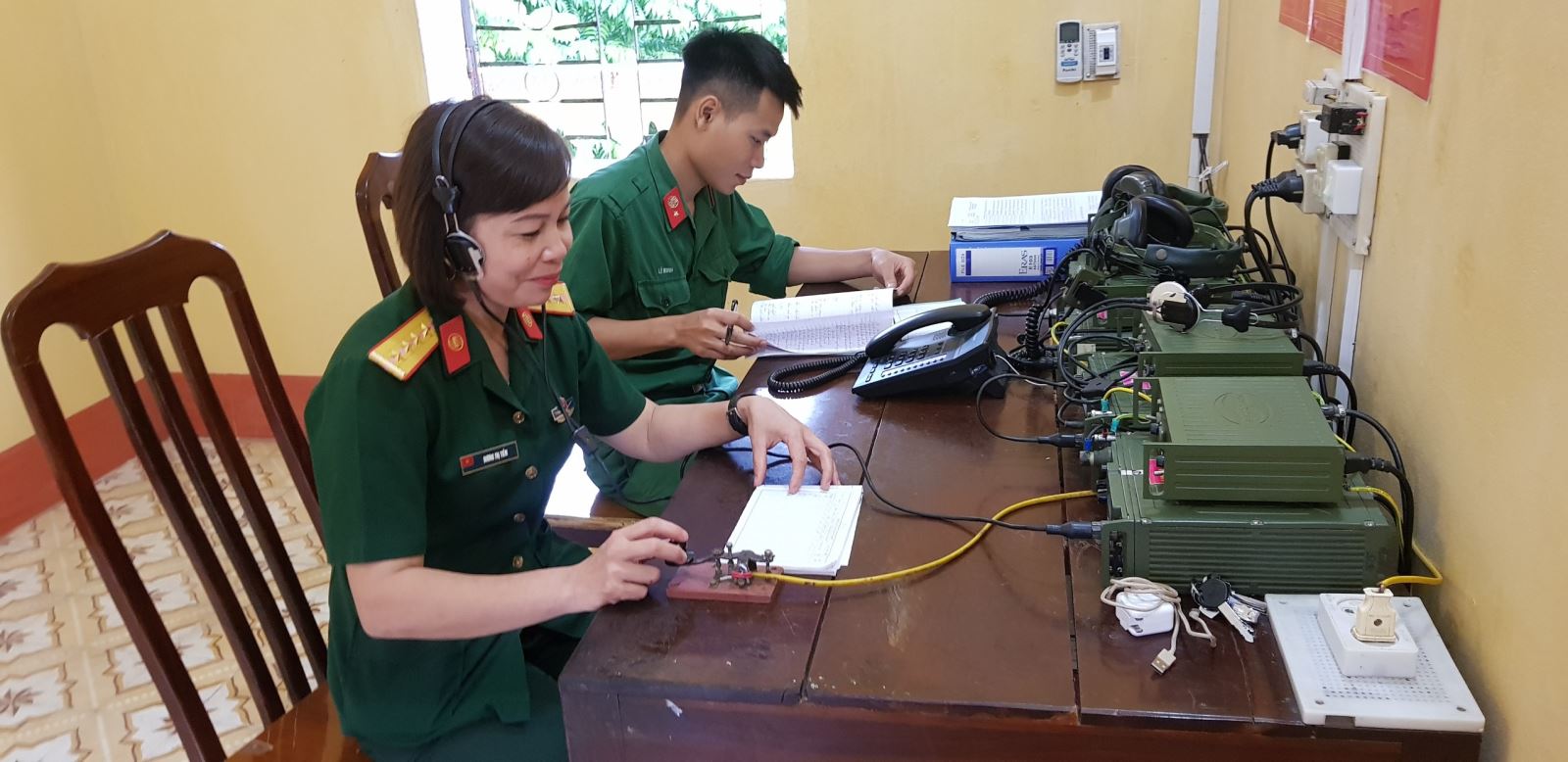 Đại úy QNCN Dương Thị Tiềm trong ca trực.
