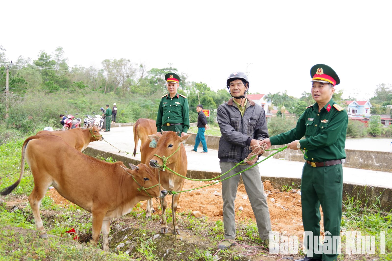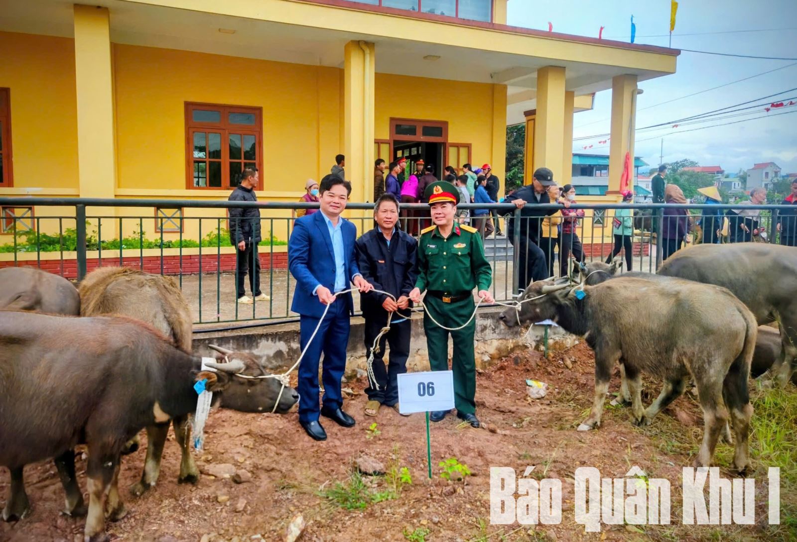 Đại tá Phạm Đình Chiến, Chính ủy Đoàn KTQP 338 trao trâu giống sinh sản cho nhân dân xã Khuất Xá (Lạng Sơn).