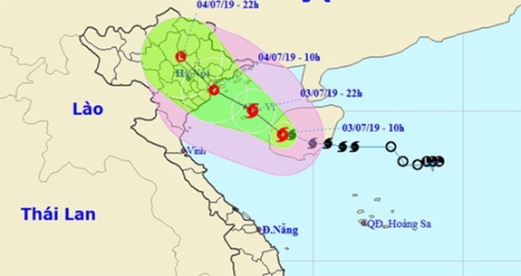 Hồi 5 giờ ngày 4-7, vị trí tâm bão ở vào khoảng 20,6 độ Vĩ Bắc; 106,5 độ Kinh Đông, ngay trên đất liền các tỉnh Hải Phòng - Nam Định. Sức gió mạnh nhất vùng gần tâm bão mạnh cấp 8 (50-75km/giờ), giật cấp 11. Bán kính gió mạnh cấp 6, giật cấp 8 trở lên khoảng 100 km tính từ tâm bão.