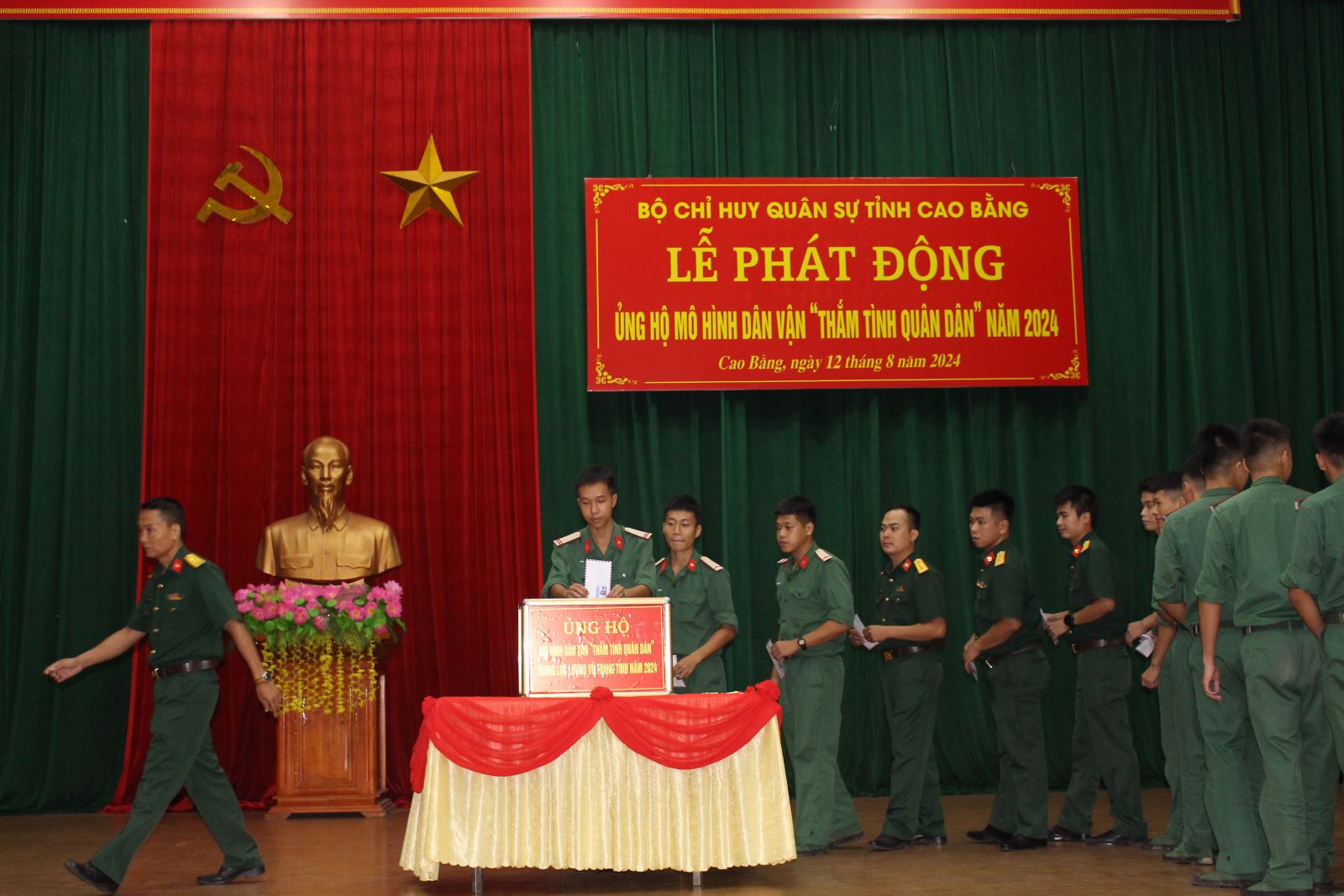 Tại lễ phát động, cán bộ, chiến sĩ các phòng, ban cơ quan Bộ CHQS tỉnh, Ban CHQS các huyện, thành phố và các cơ quan, doanh nghiệp trên địa bàn tỉnh Cao Bằng đã ủng hộ số tiền ban đầu được 300 triệu 900 nghìn đồng.