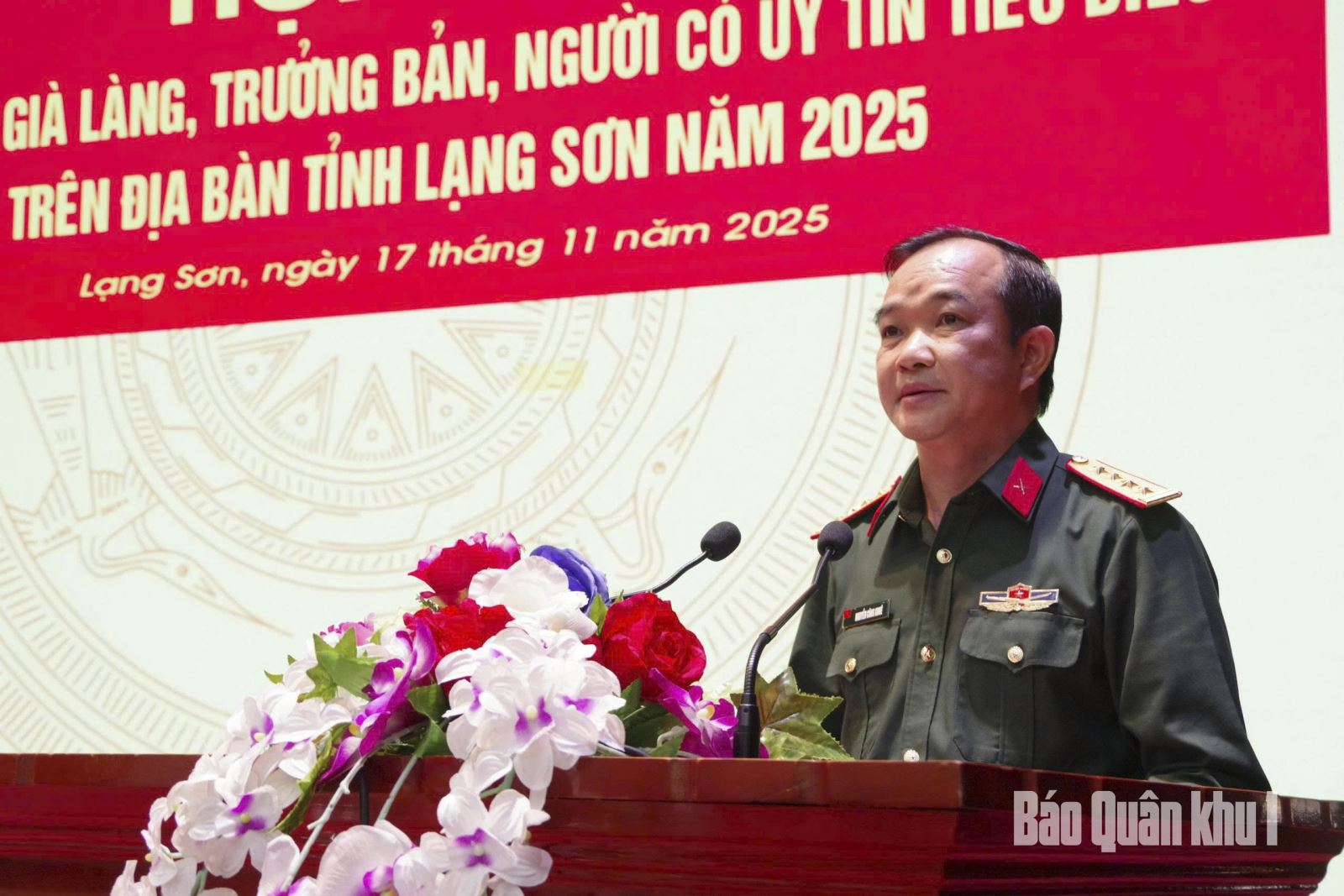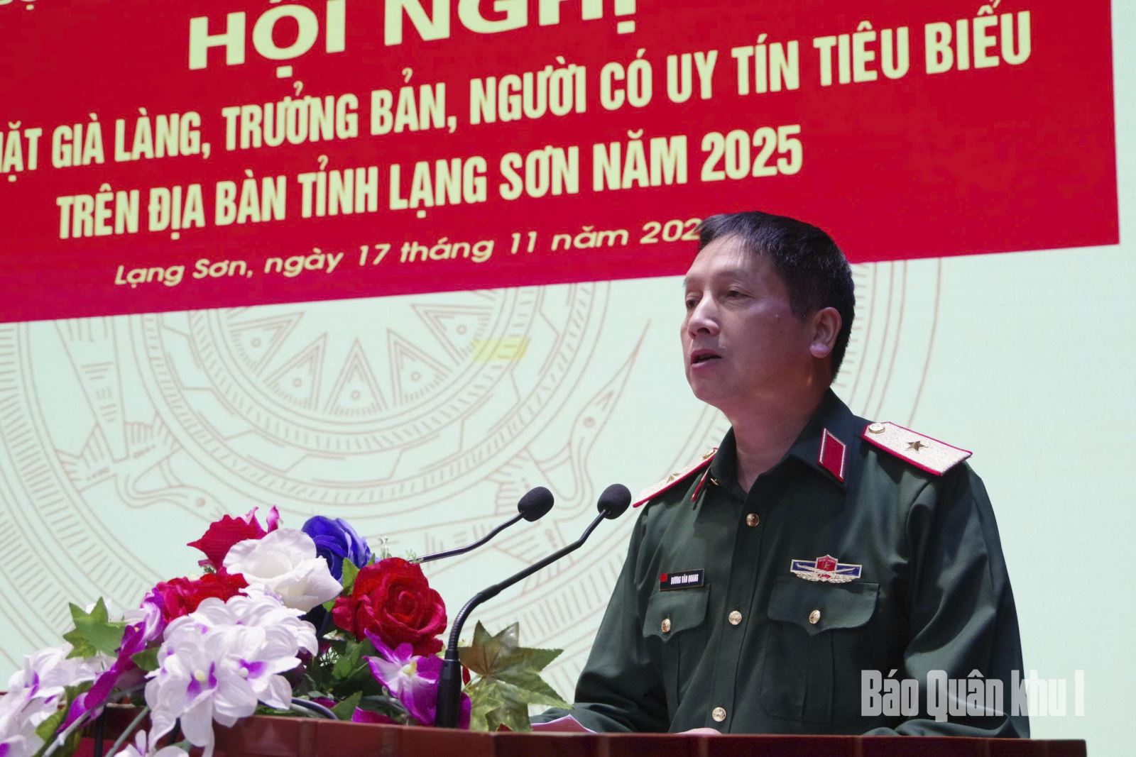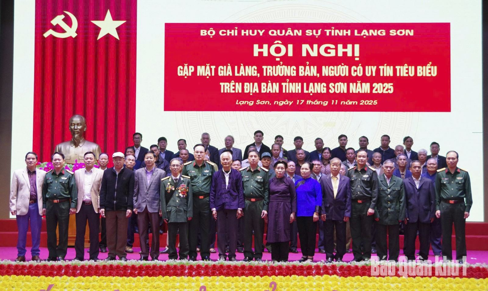 Ngày 17-11, Bộ Chỉ huy Quân sự tỉnh Lạng Sơn tổ chức hội nghị gặp mặt già làng, trưởng bản, người có uy tín tiêu biểu trên địa bàn tỉnh năm 2025. Dự và chỉ đạo hội nghị có Thiếu tướng Dương Văn Quang, Phó Chính ủy Quân khu; Đại tá Nguyễn Công Khuê, Chính ủy Bộ Chỉ huy Quân sự tỉnh chủ trì hội nghị.