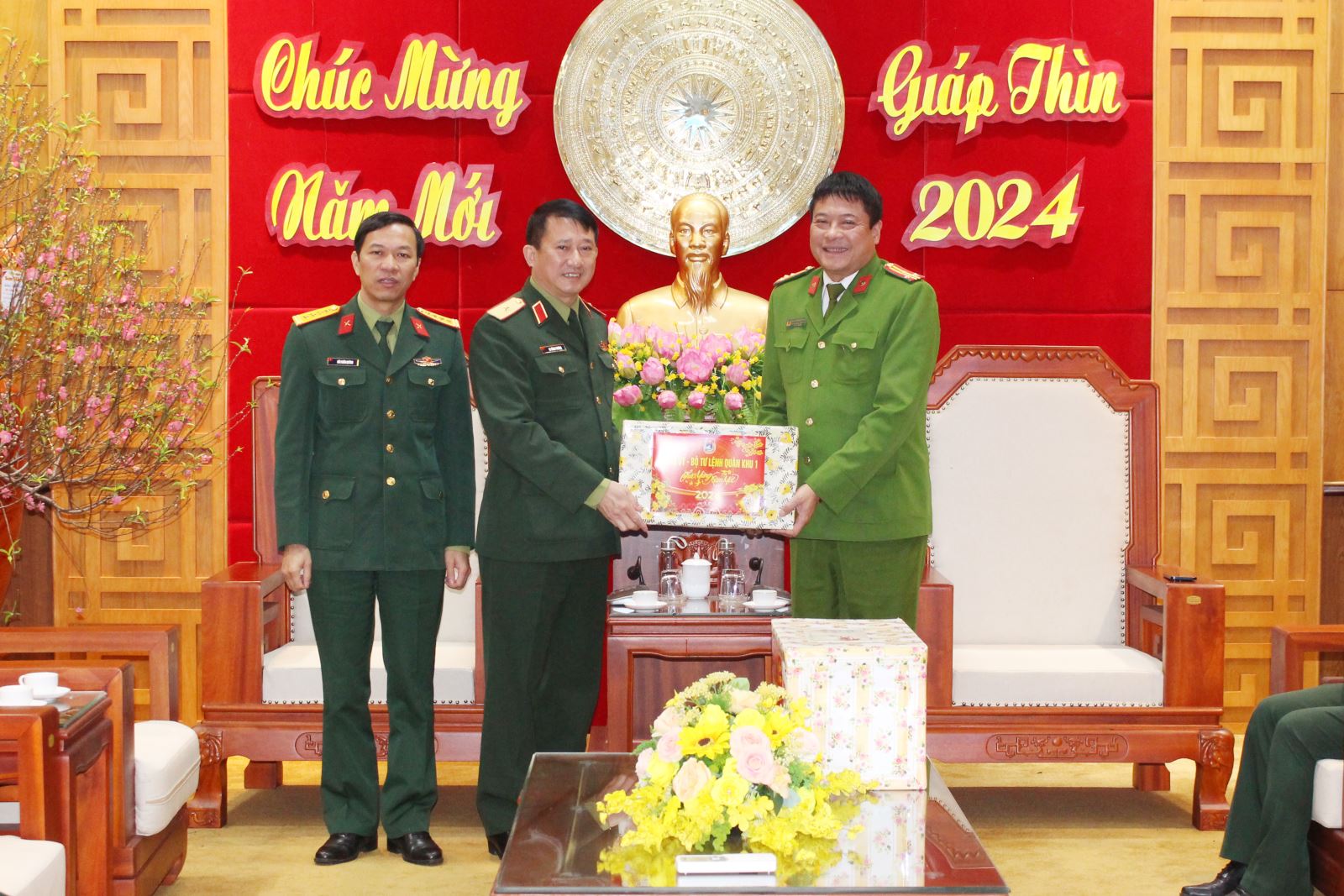 Thiếu tướng La Công Phương, Phó chính ủy Quân khu trao quà của Đảng ủy Bộ tư lệnh Quân khu tặng Công an tỉnh Thái Nguyên.