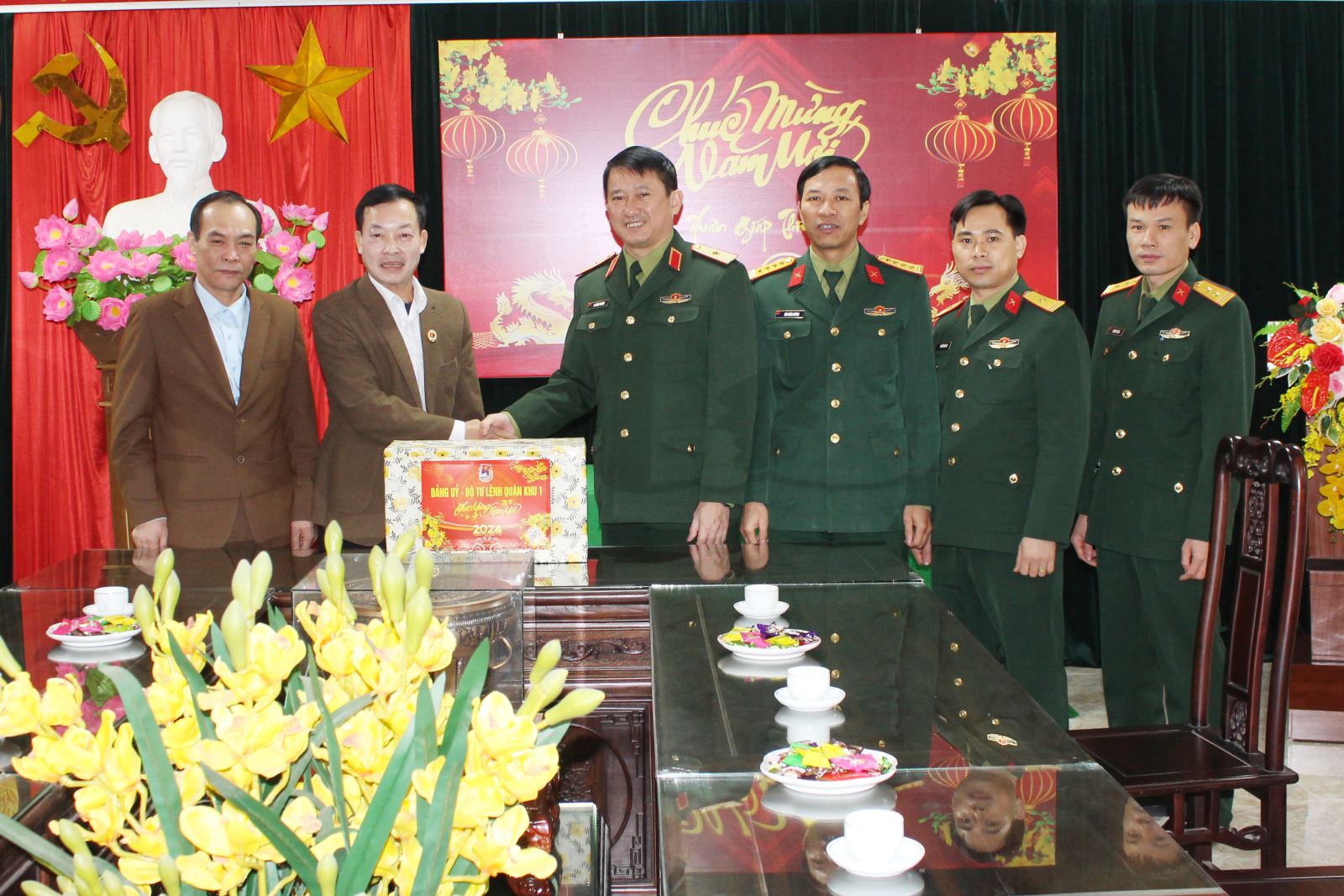 Thiếu tướng La Công Phương, Phó chính ủy Quân khu trao quà của Đảng ủy Bộ tư lệnh Quân khu tặng Ban CHQS TP Thái Nguyên.