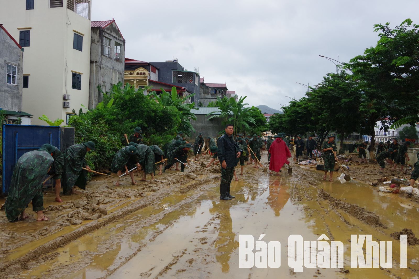 Bộ CHQS tỉnh đã huy động hơn 100 cán bộ, chiến sĩ dọn dẹp đường bờ kè phường Thục Phán, các lực lượng trực 100% quân số sẵn sàng ứng phó cơn bão số 11.