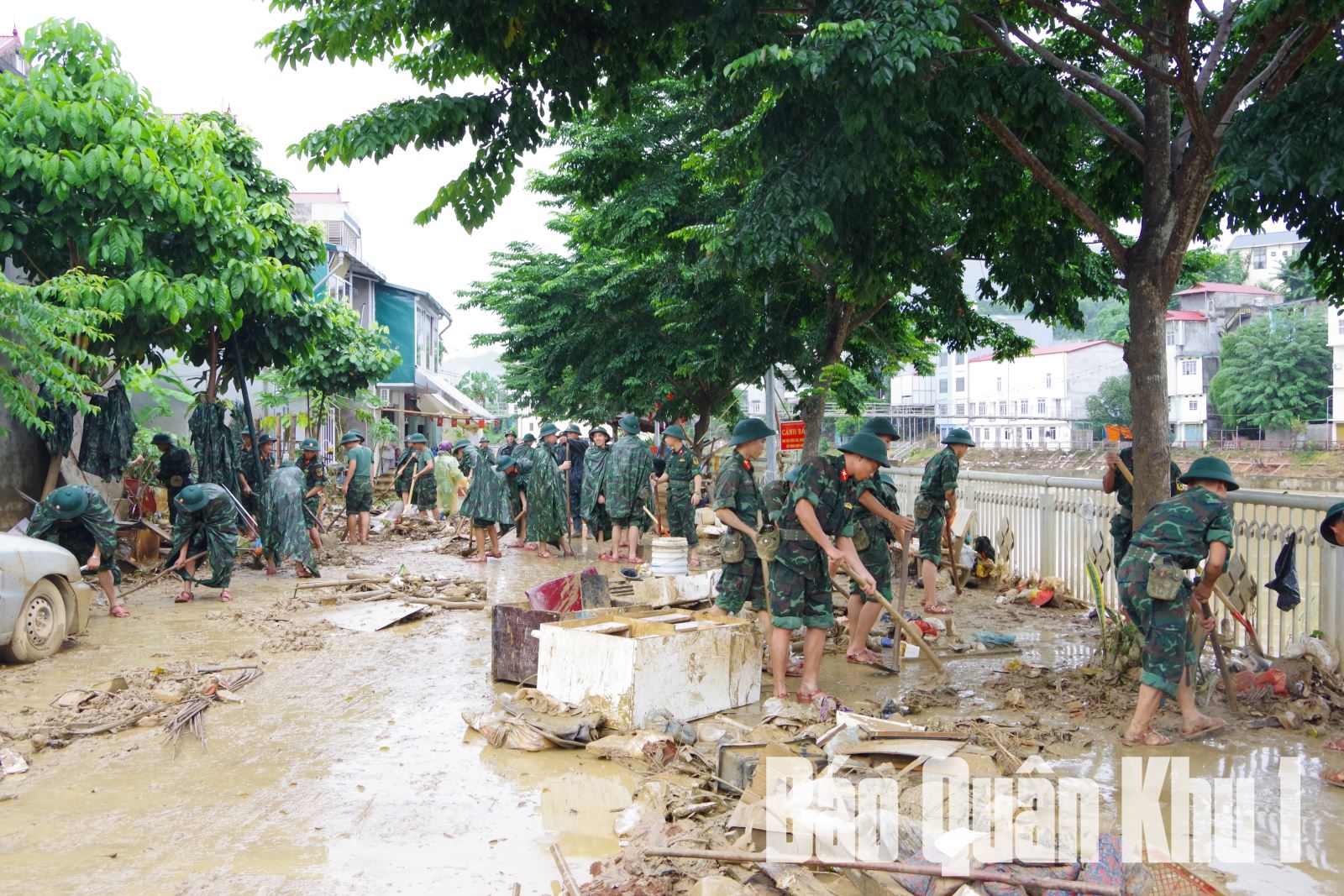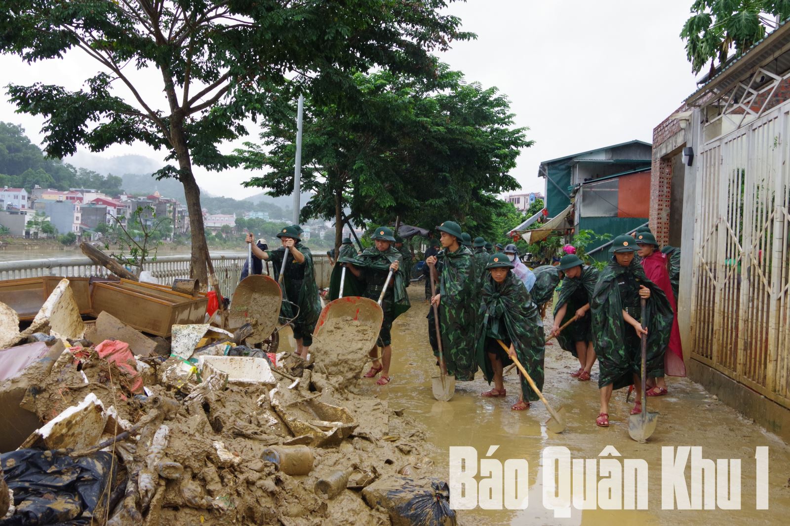 Do ảnh hưởng của trận lũ lịch sử gây ngập lụt tại nhiều nơi trên tỉnh Cao Bằng lượng rác thải tồn đọng và các vật dụng hư hỏng của các nhà dân ùn ứ tại các tuyến phố trên địa bàn phường Thục Phán mặc dù đã được các lực lượng chức năng phối hợp với công ty môi trường dọn dẹp nhưng lượng rác thải rất lớn vẫn chưa thể dọn hết. Cán bộ chiến sĩ Trung đoàn 852 đã tích cực cùng nhân viên môi trường thu gom rác thải vào địa điểm tập kết để xe chuyên dụng mang đi xử lý.