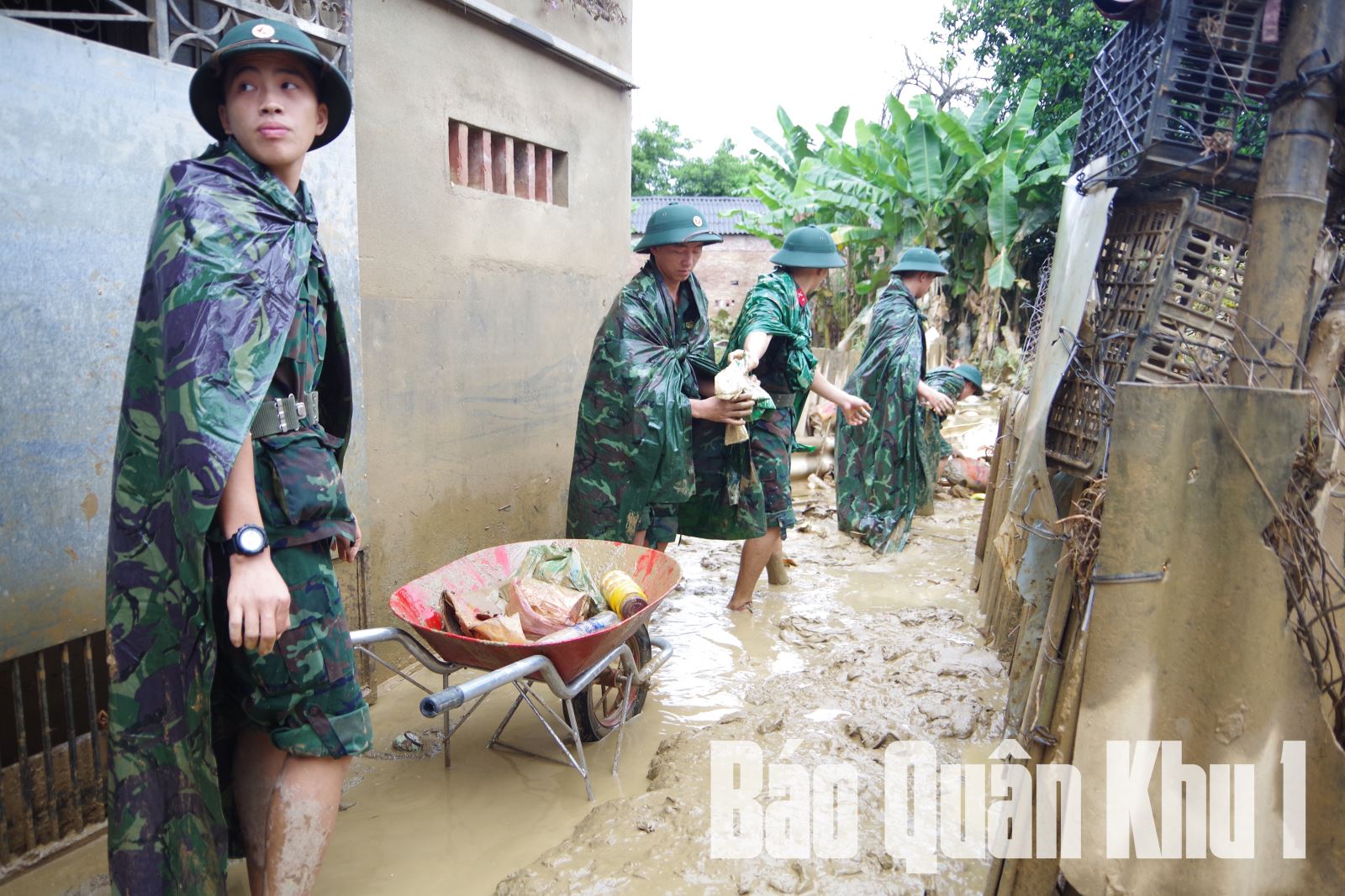 Cán bộ, chiến sĩ Bộ CHQS tỉnh khắc phục hậu quả mưa lũ và ứng phó bão số 11
