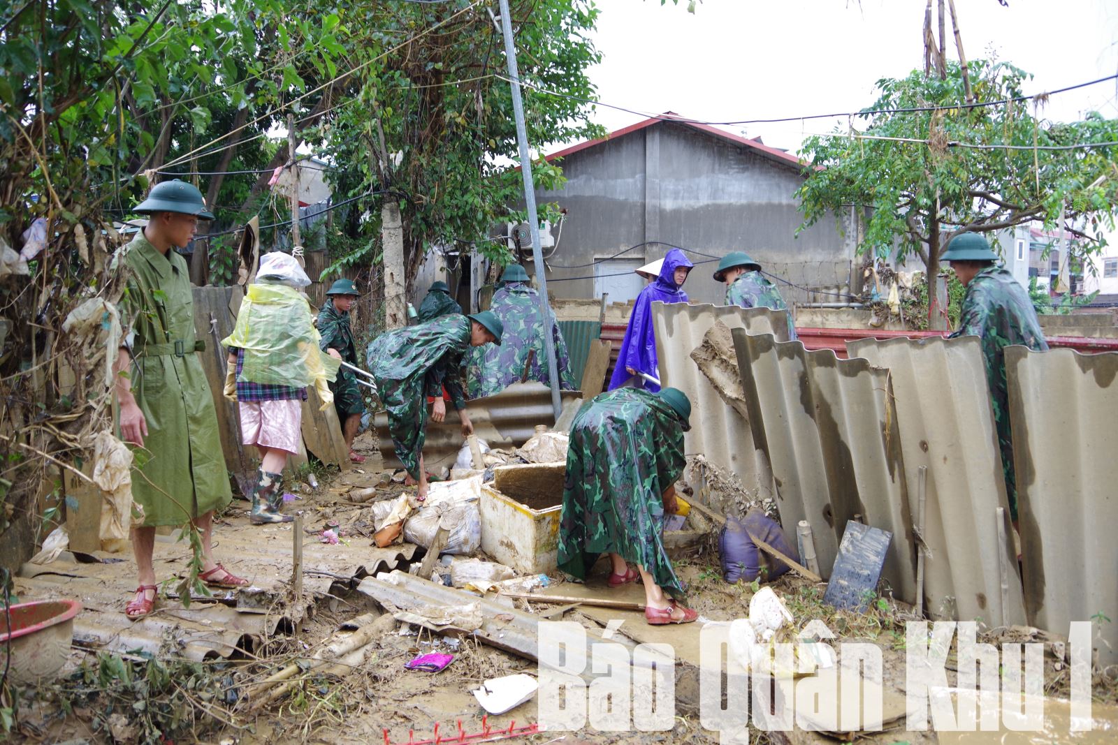 Cán bộ, chiến sĩ Sư đoàn 3 giúp dân khắc phục hậu quả mưa bão