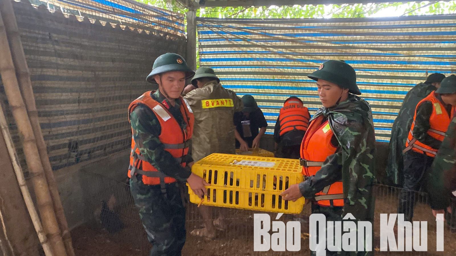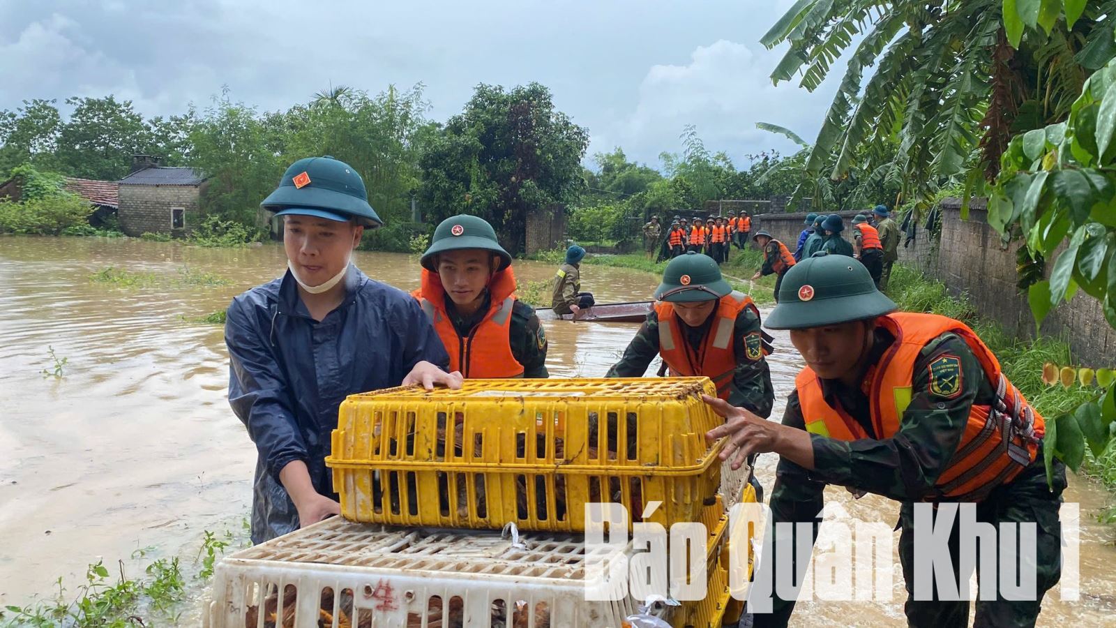 Tại thôn Trường Thịnh, xã Kép, tỉnh Bắc Ninh, cán bộ, chiến sĩ Trung đoàn 2 hỗ trợ nhân dân di dời tài sản, vật dụng đến nơi an toàn. Bất kể thời tiết mưa lớn, lực lượng bộ đội vẫn kiên trì bám dân, “đi từng ngõ, gõ từng nhà” để vận động, giúp đỡ người dân sơ tán khỏi khu vực ngập sâu.