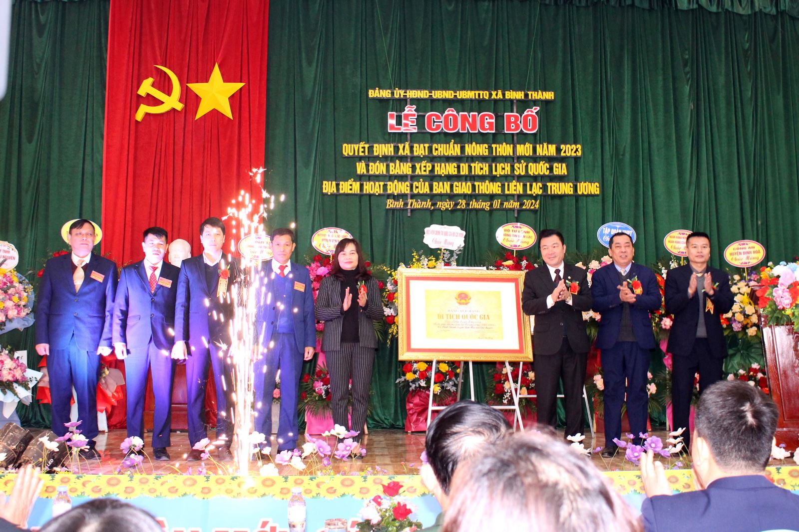 Ban Thường vụ Huyện ủy Định Hóa trao Quyết định xếp hạng di tích lịch sử Quốc gia địa điểm hoạt động của Ban giao thông liên lạc Trung ương cho Ban Thường vụ Đảng ủy xã Bình Thành (Định Hóa, Thái Nguyên).