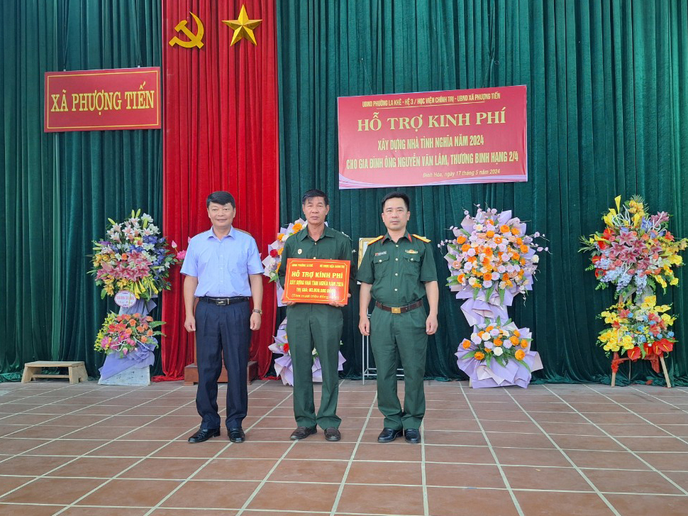 Ngày 17-5, tại xóm Nà Lang, xã Phượng Tiến, huyện Định Hoá, tỉnh Thái Nguyên, đoàn công tác Hệ 3, Học viện Chính trị và UBND phường La Khê (Hà Đông, Hà Nội) đã tổ chức trao số tiền 80 triệu đồng hỗ trợ xây dựng “Nhà tình nghĩa” tặng gia đình thương binh Nguyễn Văn Lâm.