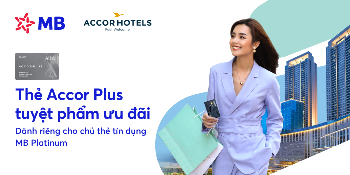 Ngân hàng Quân Đội (MB) vừa bắt tay hợp tác cùng Accor Plus – Công ty trực thuộc Tập đoàn Quản lý khách sạn hàng đầu thế giới, mang tới chủ thẻ tín dụng Platium nhiều ưu đãi đặc biệt.