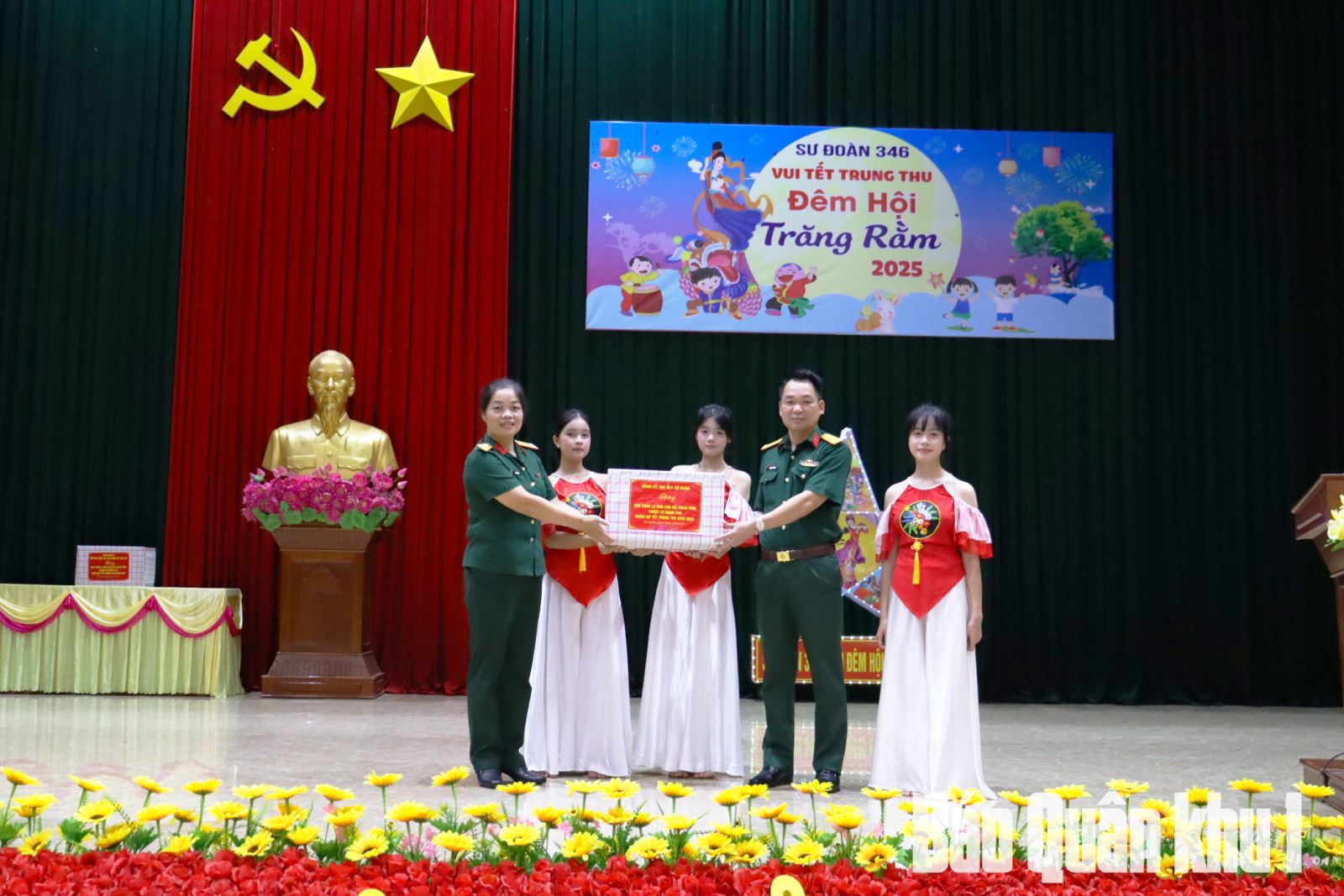 Tại chương trình tặng quà, đại biểu, gia đình quân nhân và các em thiếu nhi được thưởng thức nhiều tiết mục biểu diễn nghệ thuật, trò chơi, phá cỗ Tết Trung thu… Đoàn công tác Quân khu đã tặng quà cho tập thể Sư đoàn 346 và 4 xuất quà cho các cháu là con của quân nhân bị bệnh hiểm nghèo, khuyết tật có hoàn cảnh đặc biệt khó khăn, con liệt sĩ thuộc Sư đoàn với tổng số tiền gần 10 triệu đồng. Sư đoàn 346 cũng đã tặng quà cho các cháu có hoàn cảnh khó khăn và các cháu đạt thành tích xuất sắc trong học tập với tổng số tiền gần 20 triệu đồng.