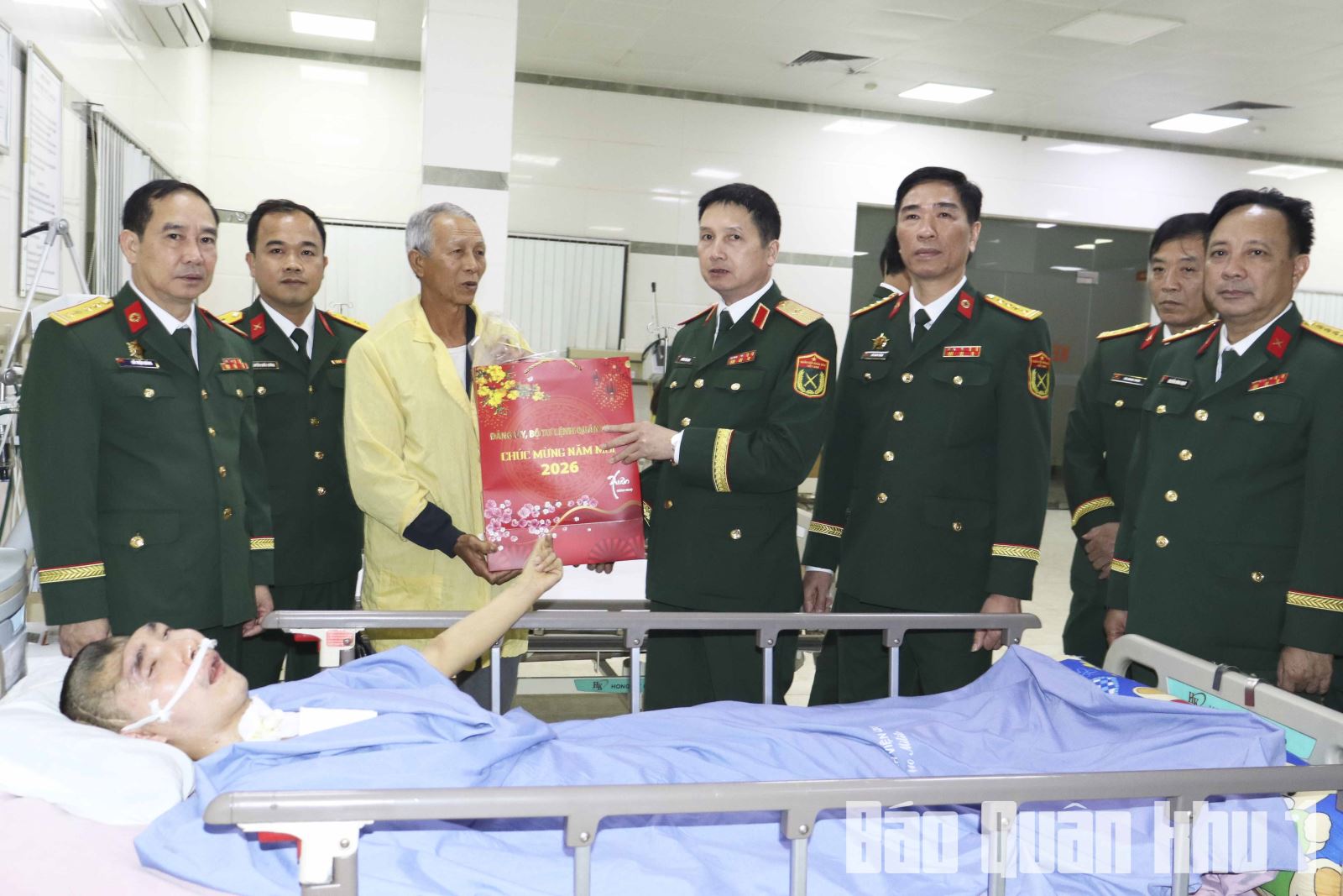 Nhân dịp Tết Nguyên đán Bính Ngọ 2026, đồng chí Phó Chính ủy Quân khu chúc các bệnh nhân đang điều trị tại bệnh viện đón Tết cổ truyền dân tộc vui tươi, hạnh phúc, an lành, sớm bình phục, mạnh khỏe trở về với gia đình, đơn vị.