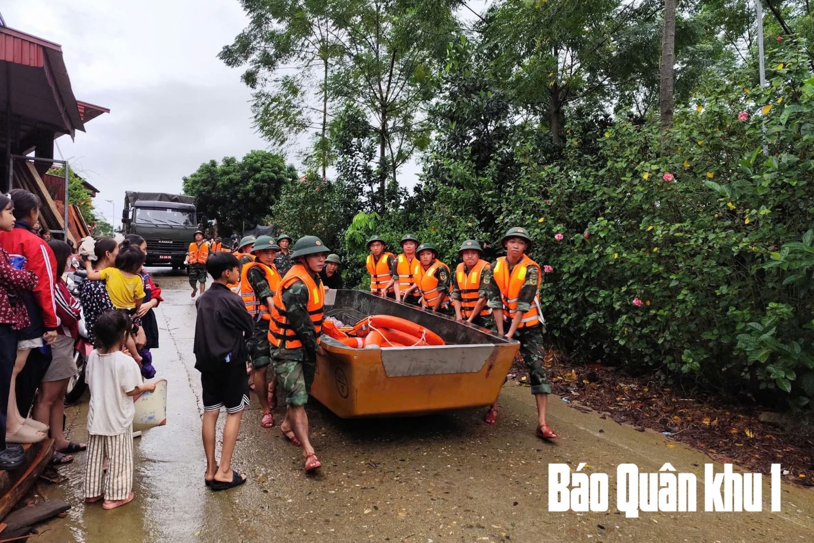 Trước diễn biến phức tạp của tình hình mưa lũ trên địa bàn các xã của tỉnh Thái Nguyên, thực hiện chỉ đạo của Thường vụ Đảng ủy, Bộ Tư lệnh Quân khu, ngay từ sáng ngày 7-10, Sư đoàn 346 đã huy động lực lượng, phương tiện tham gia di dời người, phương tiện và tài sản nhân dân trên địa bàn các xã, phường của tỉnh Thái Nguyên: Hợp Thành, Vô Tranh, Phan Đình Phùng, Linh Sơn, Quán Triều...ra khỏi vùng ngập úng, xử lý và khắc phục kịp thời các điểm bị ảnh hưởng do bão.