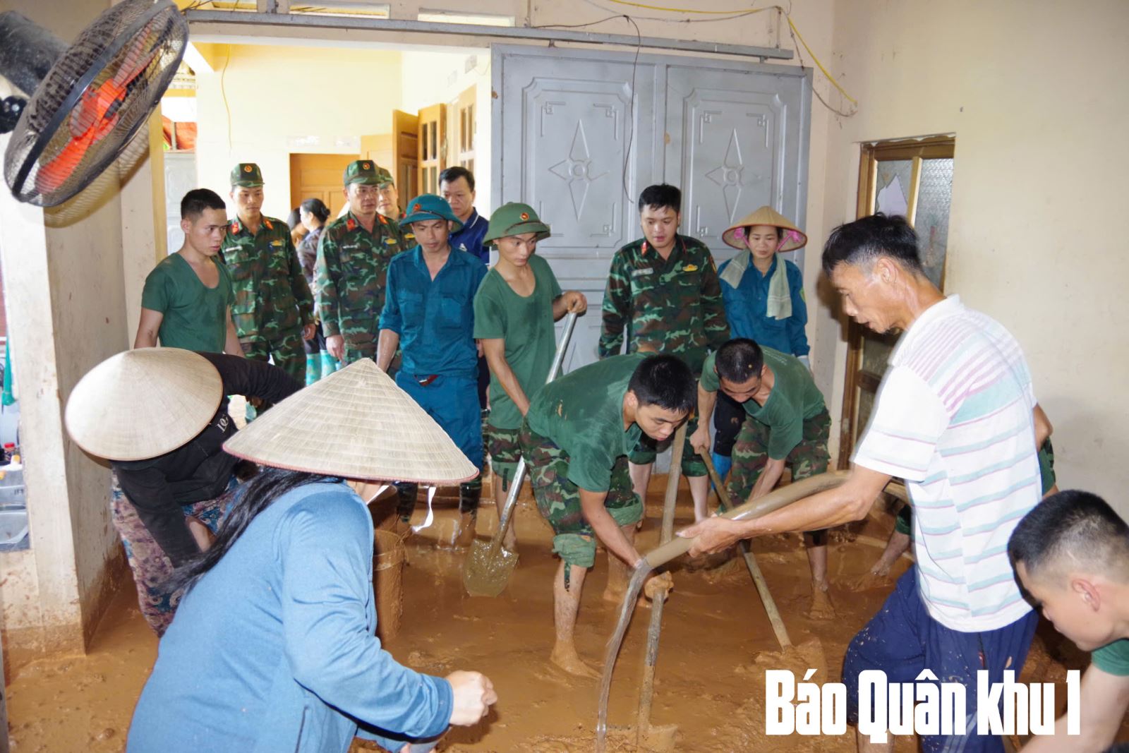 Khi mực nước cơ bản rút, từ sáng ngày 9-10, cán bộ, chiến sĩ Sư đoàn 346 tiếp tục giúp đỡ hơn 200 hộ dân khắc phục hậu quả mưa bão; tiến hành dọn hàng nghìn tấn bùn đất, dọn và khử khuẩn nhà, thông tuyến các đường nội xã. Tổ quân y của Sư đoàn phối hợp với trạm y tế xã thực hiện kiểm tra y tế ban đầu cho hơn 100 công dân, tổ chức phát thuốc và hướng dẫn người dân xử lý nước sinh hoạt để phòng ngừa dịch bệnh sau lũ.