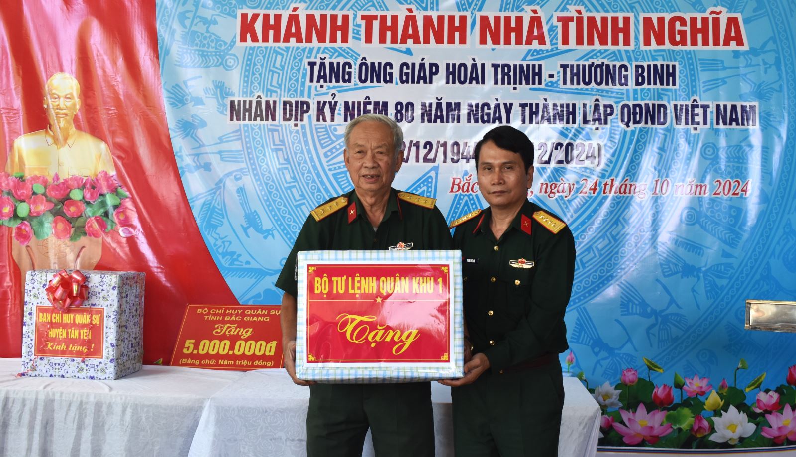 Được biết, trong năm 2024, Bộ tư lệnh Quân khu đã hỗ trợ xây dựng 16 “Nhà tình nghĩa” cho các đối tượng chính sách. Trong đó, tỉnh Bắc Giang được hỗ trợ xây dựng 2 nhà tình nghĩa tại huyện Lục Nam và Tân Yên, mỗi nhà trị giá 80 triệu đồng bằng quỹ “Đền ơn đáp nghĩa” tặng các đối tượng chính sách. Đây là một trong những hoạt động thiết thực hướng tới kỷ niệm 80 năm Ngày thành lập Quân đội nhân dân Việt Nam (22/12/1944-22/12/2024) và 35 năm Ngày hội Quốc phòng toàn dân (22/12/1989-22/12/2024).