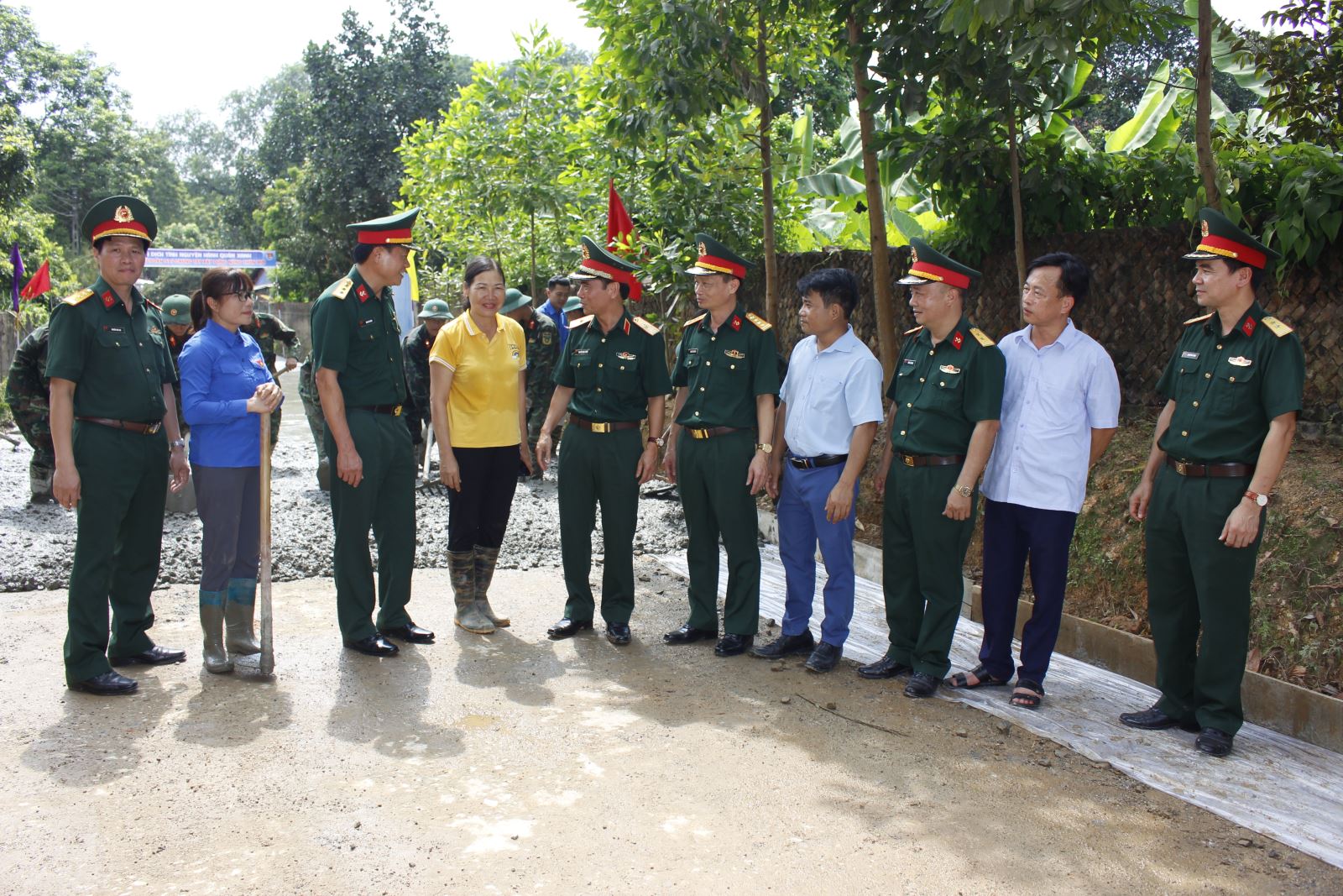 Báo cáo tại buổi kiểm tra, chỉ huy Lữ đoàn Công binh 575 cho biết, thực hiện phong trào “LLVT Quân khu chung sức xây dựng nông thôn mới”, Lữ đoàn phối hợp với cấp ủy, chính quyền và nhân dân địa phương đổ bê tông 2000m đường giao thông nông thôn, bề mặt đường rộng 5m, độ dày 18cm, đoạn đường đi qua 2 xóm Phúc Thành và Làng Nậm. Tổng kinh phí đầu tư tuyến đường là hơn 2,4 tỷ đồng, trong đó địa phương bảo đảm toàn bộ vật liệu xây dựng khoảng hơn 1,7 tỷ đồng; Lữ đoàn hỗ trợ nhân lực đổ gần 2000 khối bêtông; huy động các loại phương tiện, máy móc hơn 300 ca, đào, đắp đất, đá gần 200m3… trị giá tiền công khoảng gần 700 triệu đồng.