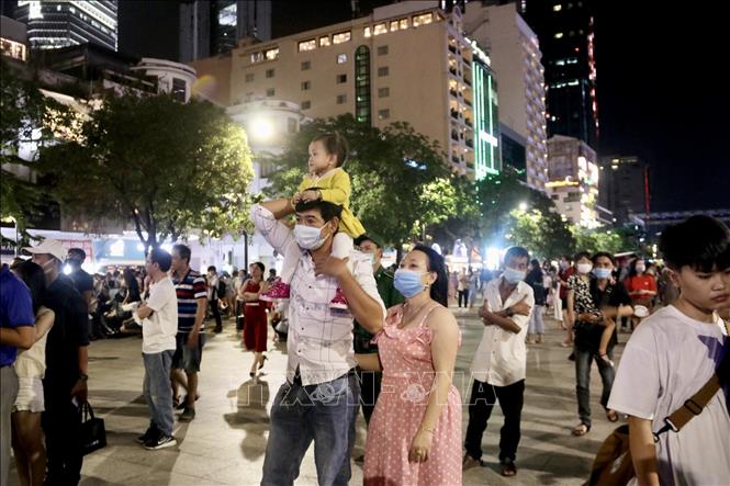 Người dân tập trung tại phố đi bộ Nguyễn Huệ (Quận 1) đón chào năm mới. Ảnh: Thu Hương/TTXVN