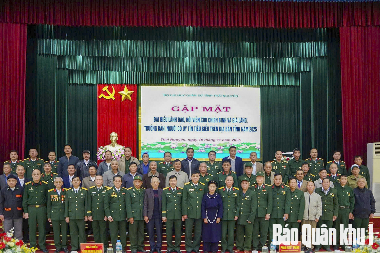 Ngày 19-11, Bộ CHQS tỉnh Thái Nguyên tổ chức buổi gặp mặt lãnh đạo, hội viên Hội Cựu chiến binh, già làng, trưởng bản và người có uy tín tiêu biểu trên địa bàn tỉnh. Dự và chỉ đạo buổi gặp mặt có Đại tá Phan Quyết Thắng, Phó chính ủy Bộ CHQS tỉnh. Chương trình có 50 đại biểu tham dự.