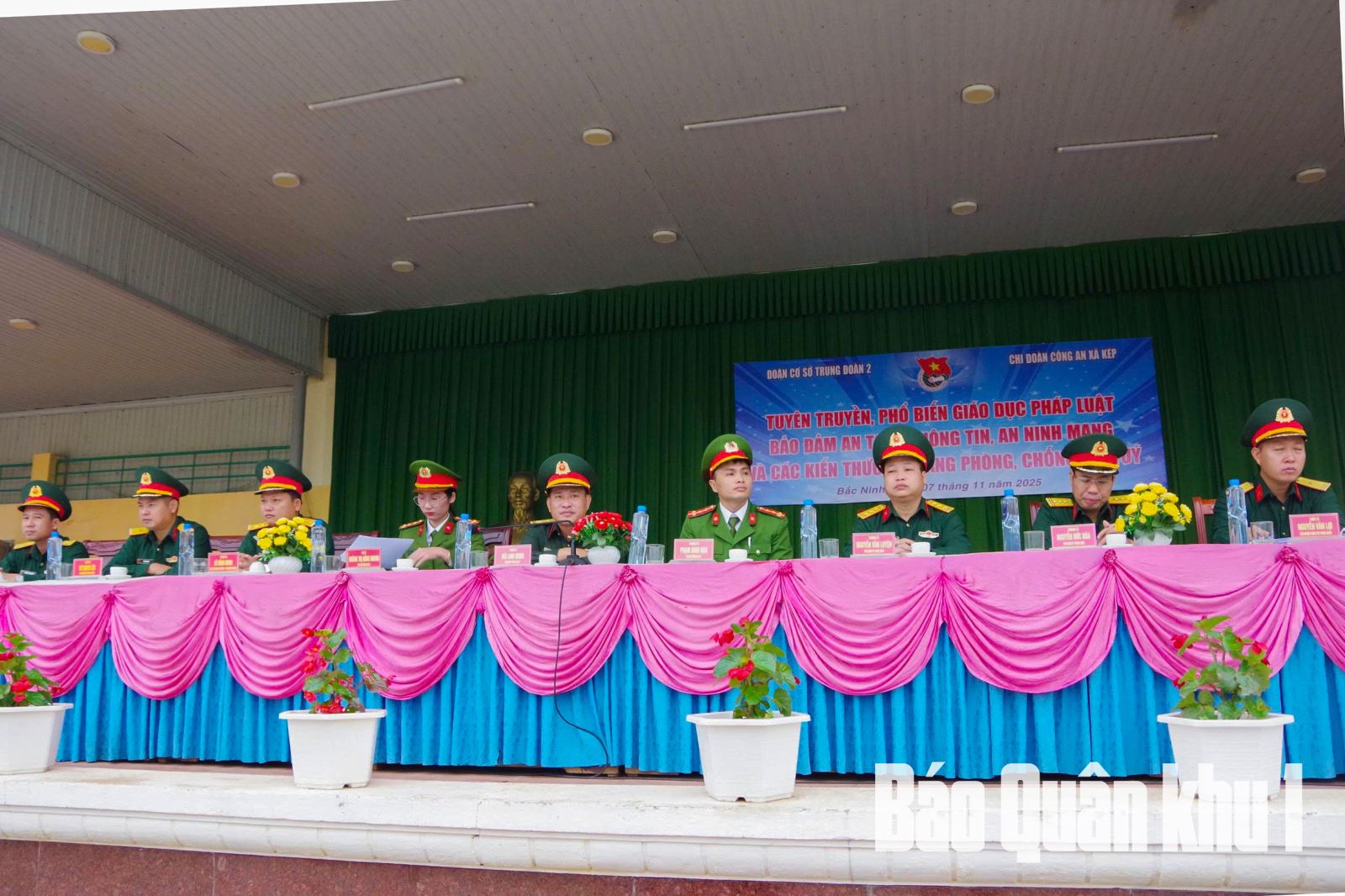 Để nâng cao nhận thức, ý thức chấp hành pháp luật Nhà nước, kỷ luật Quân đội cho cán bộ, chiến sĩ, sáng 7-11, Trung đoàn 2, Sư đoàn 3 phối hợp với công an xã Kép (Bắc Ninh) tổ chức buổi tuyên truyền, phổ biến, giáo dục pháp luật, bảo đảm an toàn thông tin, an ninh mạng và các kiến thức, kỹ năng phòng, chống ma túy cho hơn 1.200 cán bộ, đoàn viên trong Trung đoàn.