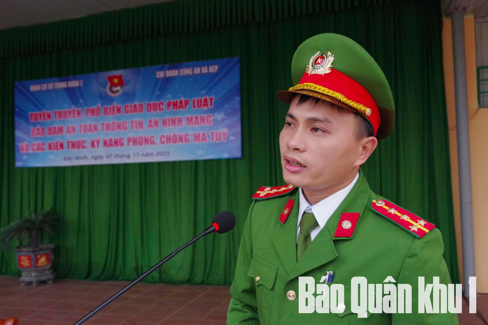 Công an xã Kép (Bắc Ninh) tuyên truyền kiến thức pháp luật cho cán bộ, đoàn viên, thanh niên Trung đoàn 2, Sư đoàn 3