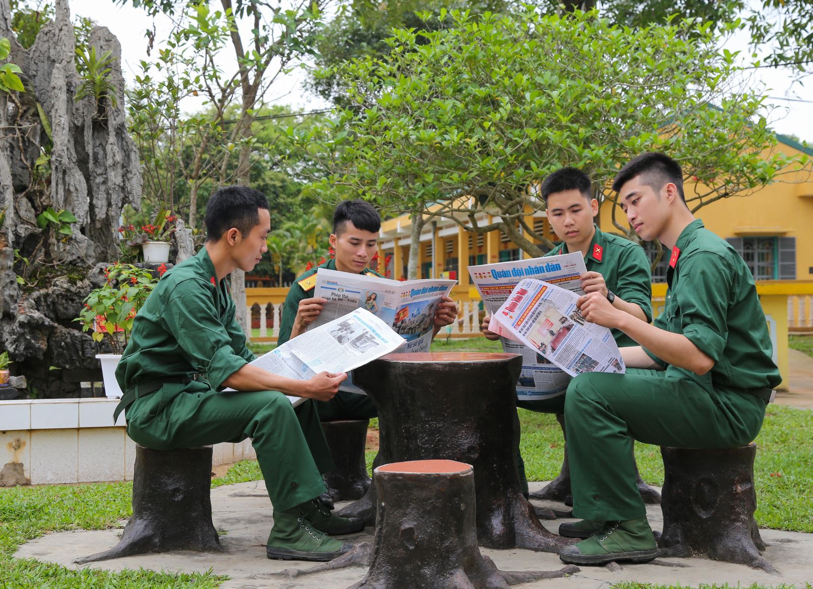Cán bộ, đoàn viên đọc báo trong giờ nghỉ.