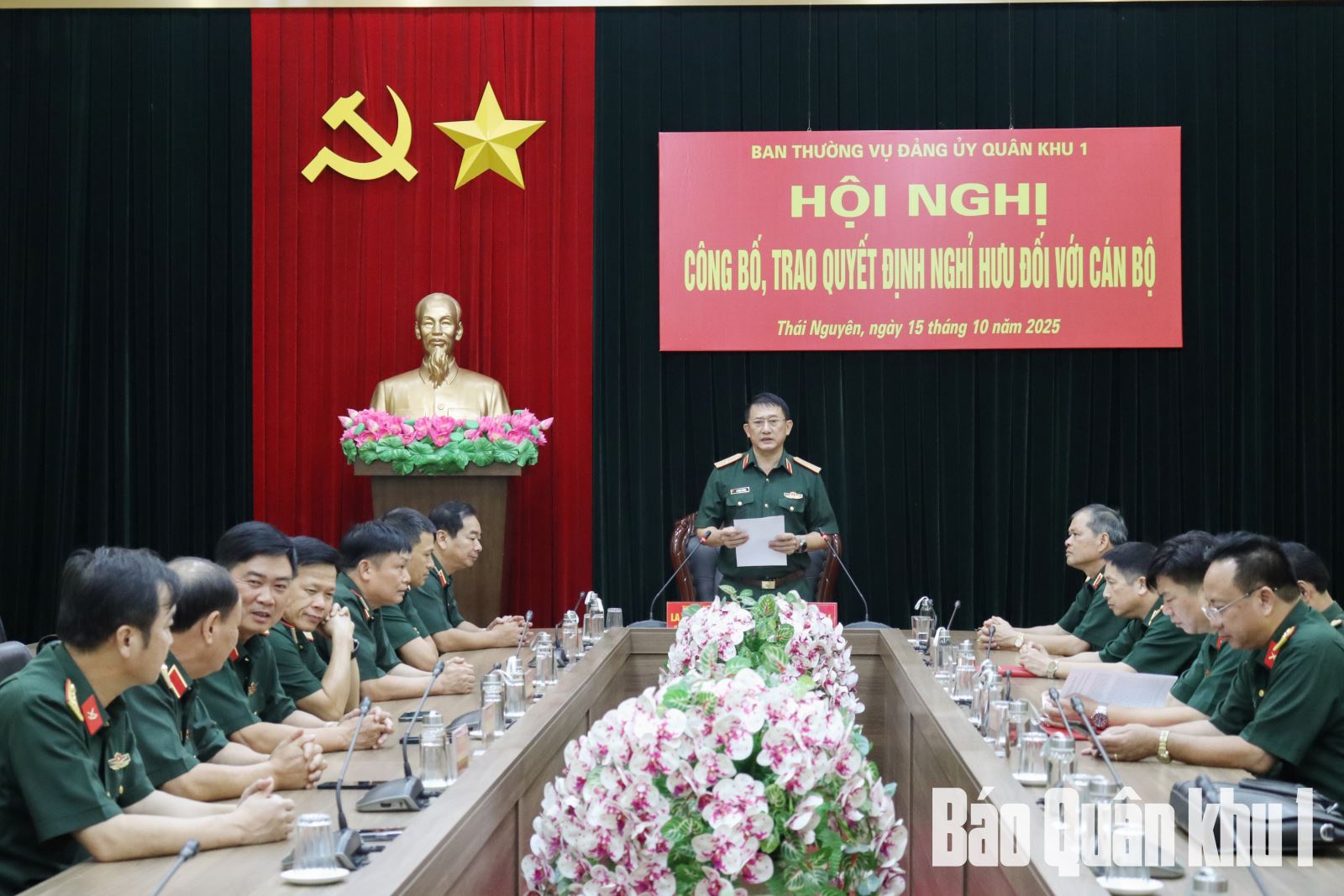 Chiều 15-10, Quân khu tổ chức hội nghị công bố, trao quyết định nghỉ hưu đối với cán bộ cho Trung tướng Dương Đình Thông, nguyên Bí thư Đảng ủy, Chính ủy Quân khu. Dự hội có Thiếu tướng La Công Phương, Bí thư Đảng ủy, Chính ủy Quân khu; Thiếu tướng Trương Mạnh Dũng, Tư lệnh Quân khu.