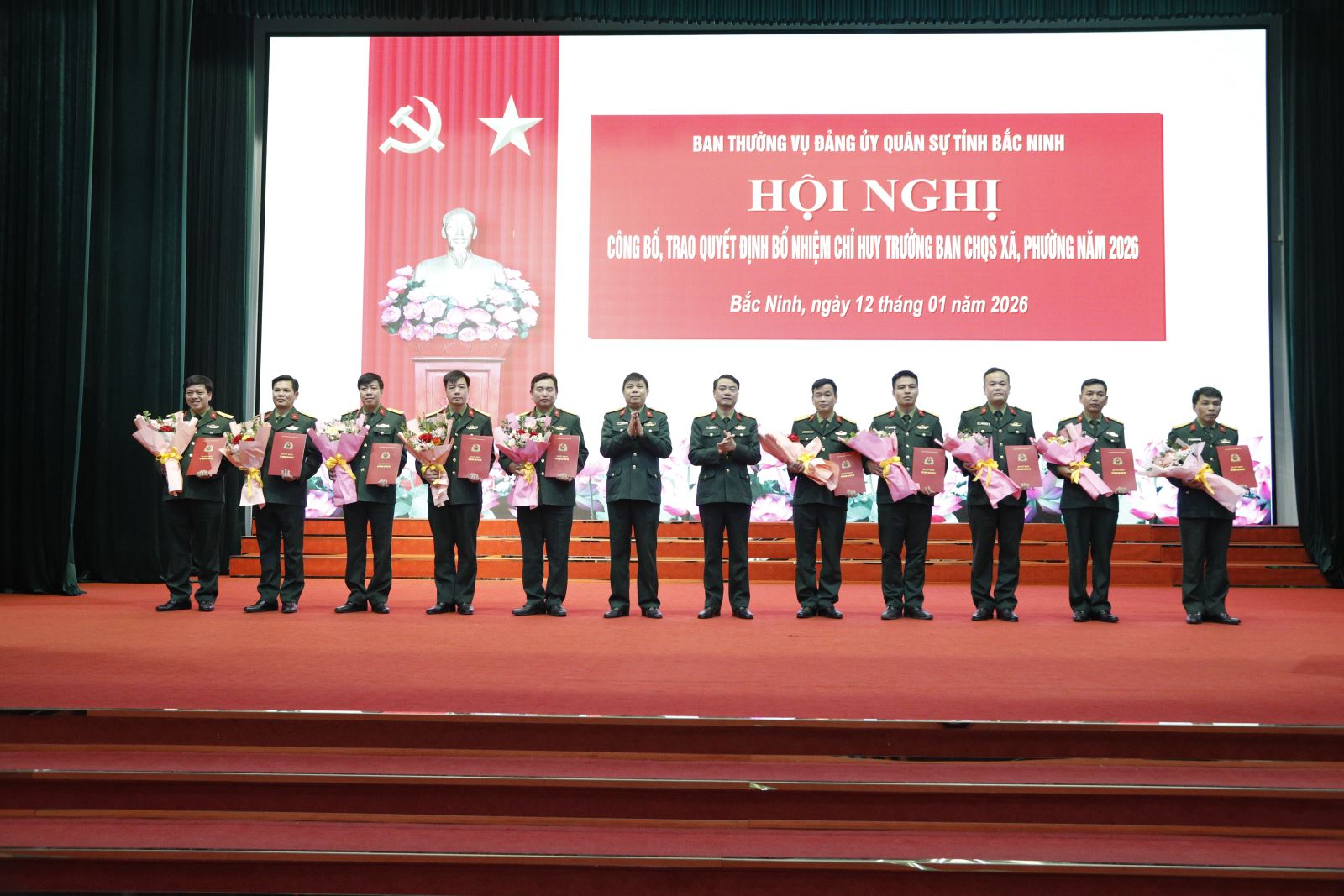 Ngày 12/1, Ban Thường vụ Đảng ủy Quân sự tỉnh Bắc Ninh tổ chức hội nghị công bố và trao quyết định bổ nhiệm Chỉ huy trưởng Ban Chỉ huy quân sự xã, phường. Dự hội nghị có các đồng chí: Đại tá Phạm Văn Tạo, Ủy viên Ban Thường vụ Tỉnh ủy, Chỉ huy trưởng Bộ Chỉ huy quân sự tỉnh; Đại tá Trần Viết Năng, Tỉnh ủy viên, Phó bí thư Thường trực Đảng ủy Quân sự, Chính ủy Bộ CHQS tỉnh.