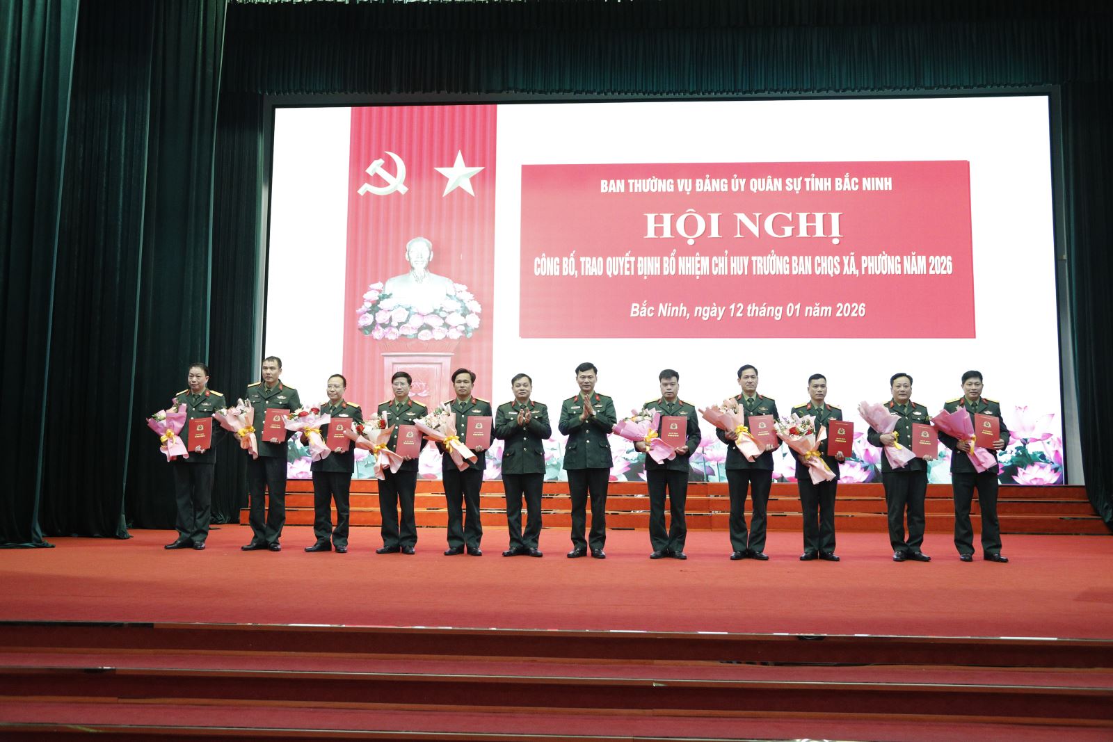 Tại hội nghị, các đại biểu đã nghe công bố Quyết định của Quân khu 1 về việc bổ nhiệm chức vụ cán bộ. Trong đó, bổ nhiệm có thời hạn đối với 99 đồng chí về giữ chức vụ Chỉ huy trưởng Ban Chỉ huy quân sự các xã, phường tỉnh Bắc Ninh. Đây là đợt kiện toàn đội ngũ cán bộ quân sự cơ sở quan trọng, đáp ứng yêu cầu nhiệm vụ quốc phòng, quân sự địa phương trong tình hình mới.