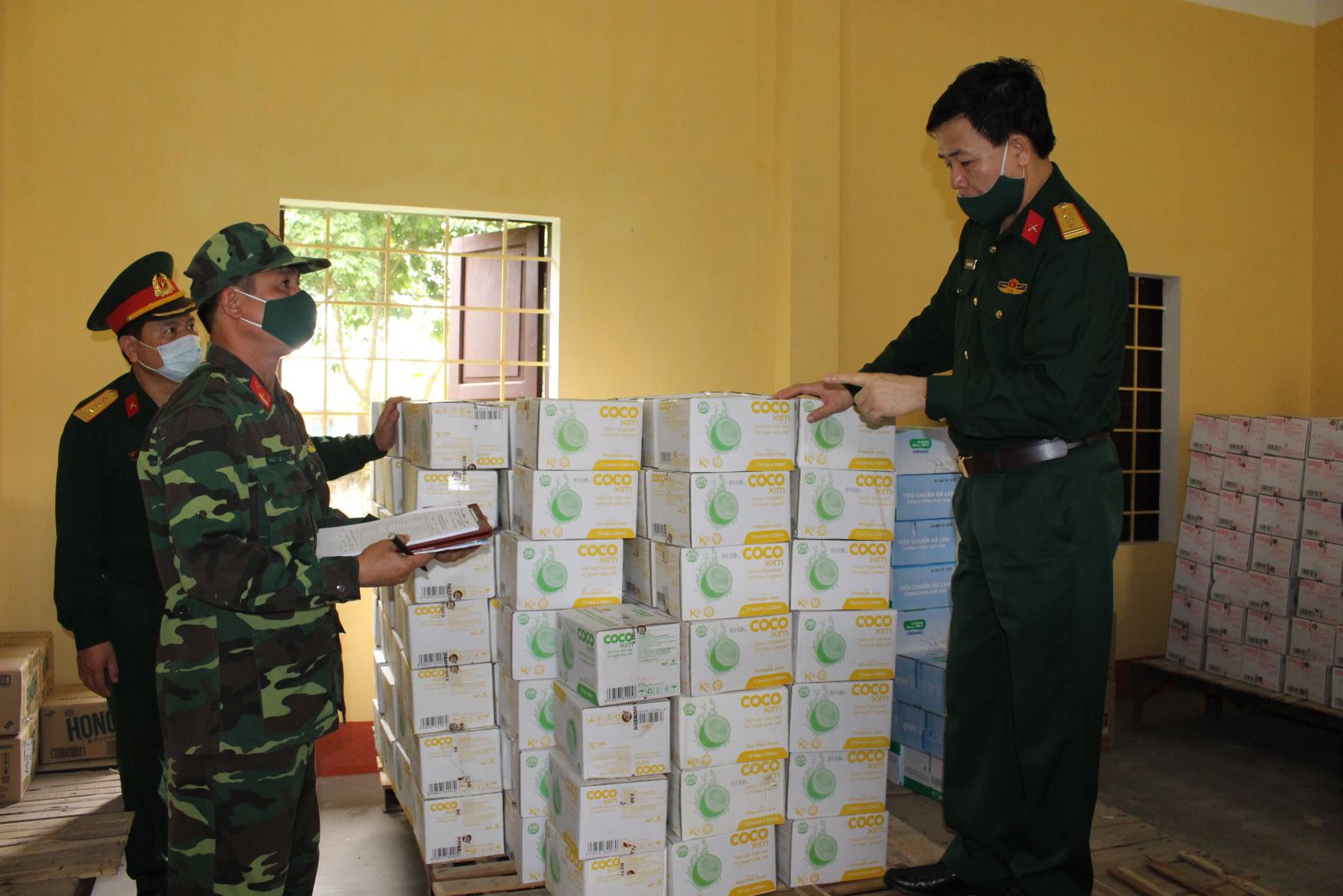 Đại tá Nguyễn Minh Thao, Phó Chủ nhiệm Chính trị, Tổ trưởng Tổ tiếp nhận vật chất, kinh phí của Quân khu kiểm tra các mặt hàng vừa tiếp nhận.