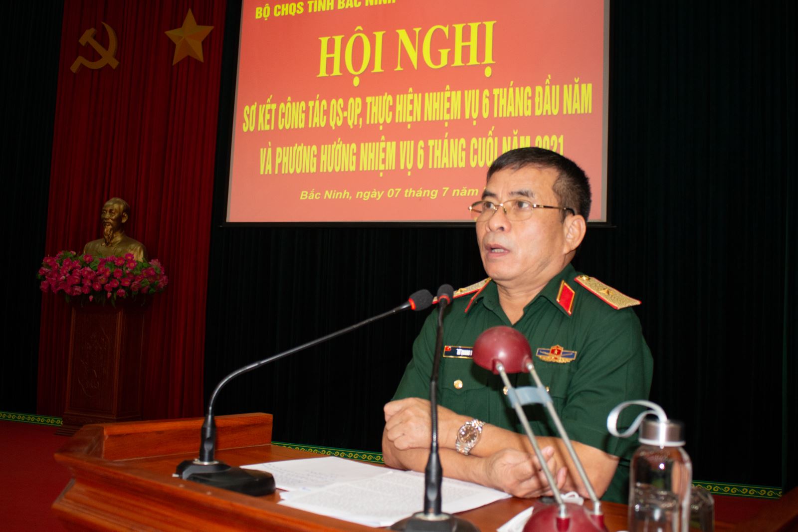 Sáng 7-7, Bộ CHQS tỉnh Bắc Ninh tổ chức Hội nghị sơ kết công tác quân sự, quốc phòng (QS, QP), thực hiện nhiệm vụ 6 tháng đầu năm và phương hướng, nhiệm vụ 6 tháng cuối năm 2021. Thiếu tướng Hà Quang Vinh, Phó Tham mưu trưởng Quân khu dự và phát biểu chỉ đạo.