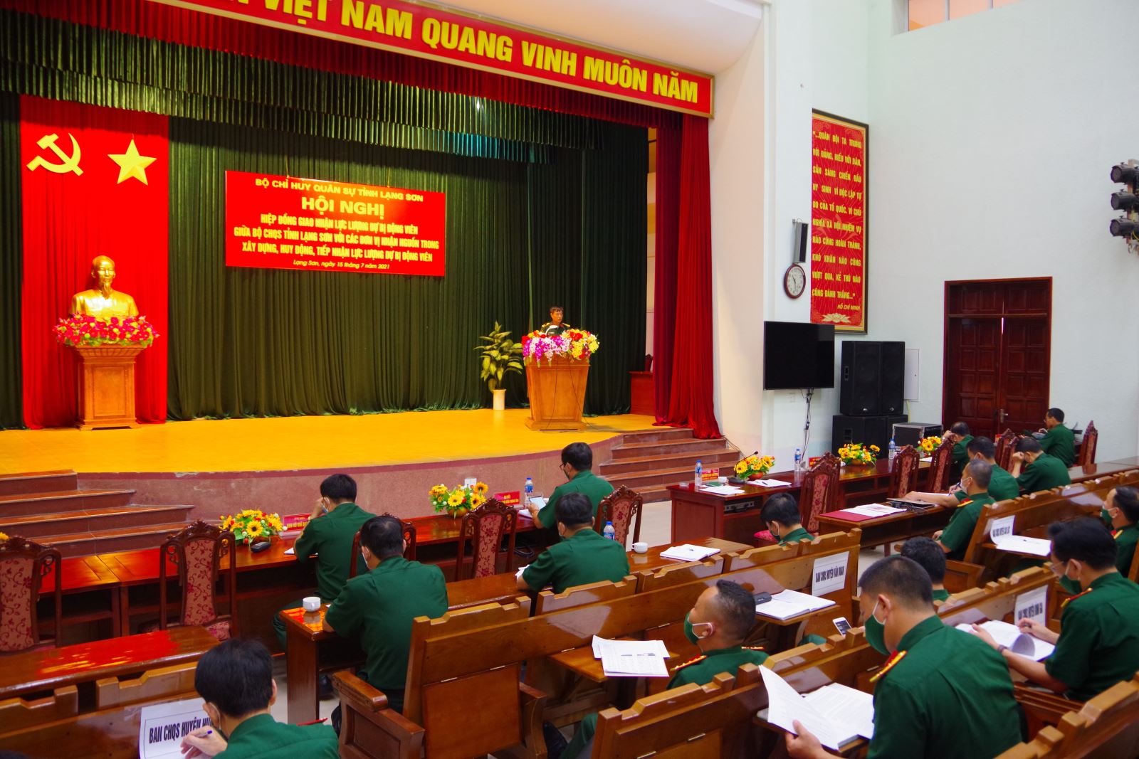 Tại hội nghị, Bộ CHQS tỉnh Lạng Sơn đã công bố Quyết định của Chủ tịch UBND tỉnh và Chỉ huy trưởng Bộ CHQS tỉnh về việc giao chỉ tiêu huy động và tiếp nhận lực lượng dự bị động viên cho Ban CHQS các huyện, thành phố. Căn cứ chỉ tiêu được giao, các huyện, thành phố sẽ tiến hành lựa chọn, động viên, tiếp nhận và tổ chức bàn giao cho các đơn vị nhận nguồn, bảo đảm kịp thời, đúng quy định.