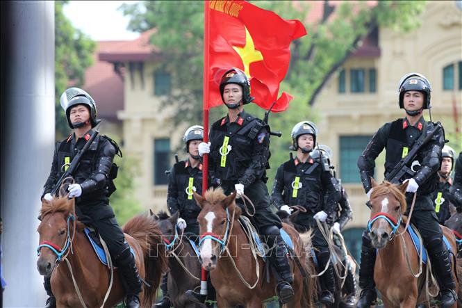 Đoàn Cảnh sát cơ động kỵ binh (Bộ Tư lệnh Cảnh sát cơ động, Bộ Công an) tổ chức diễu hành. Ảnh: TTXVN