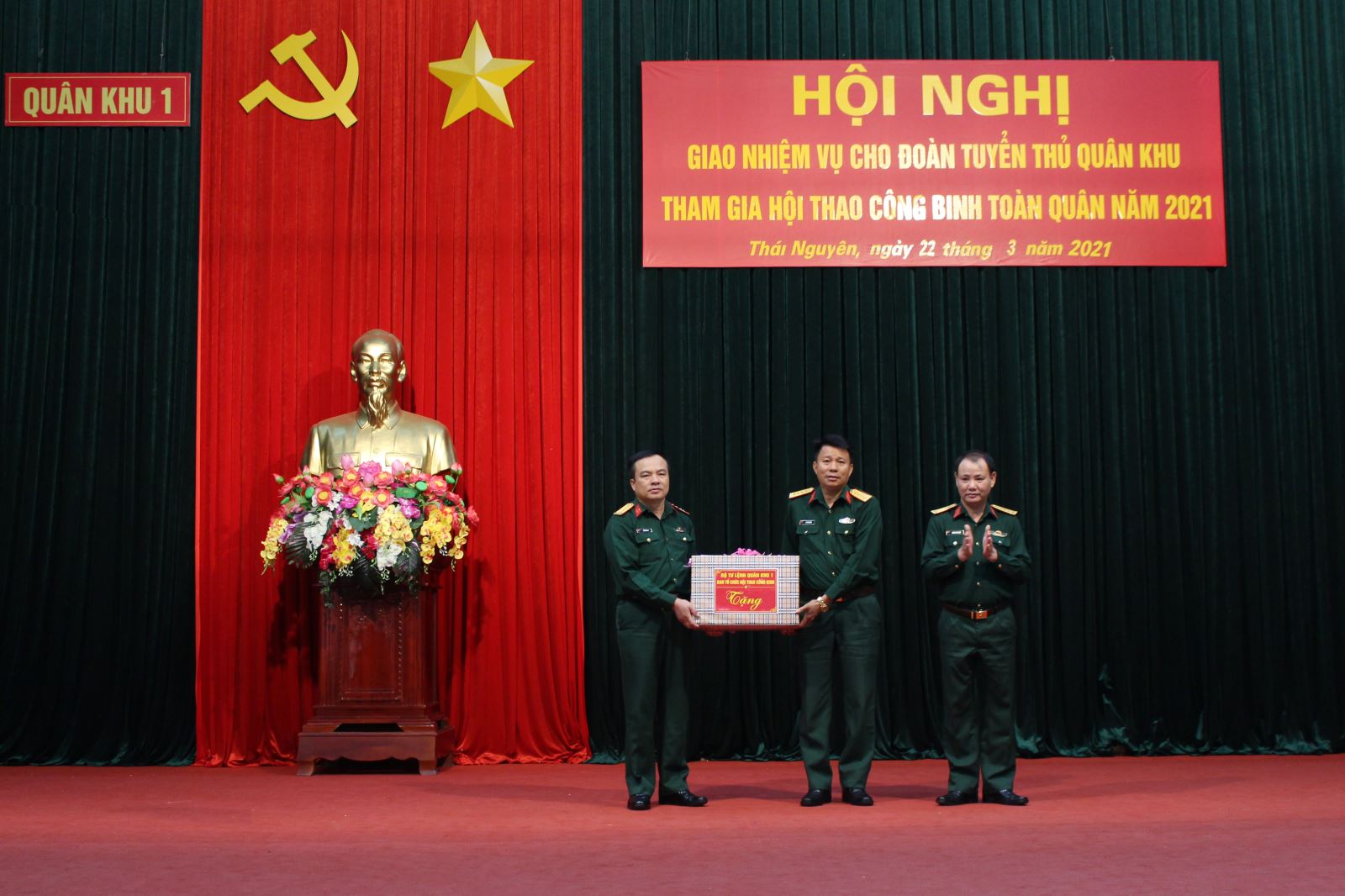 Đại tá Hoàng Văn Năm, Phó tham mưu trưởng Quân khu tặng quà động viên đoàn hội thao Quân khu.