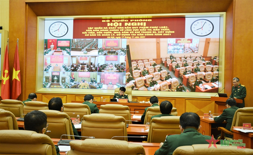 Sáng 17-11, Bộ Quốc phòng tổ chức Hội nghị tập huấn rà soát văn bản quy phạm pháp luật, văn bản hành chính về lĩnh vực đầu tư, đấu thầu, cải tiến, sửa chữa, mua sắm vũ khí trang bị, xây dựng cơ bản và quản lý, sử dụng tài sản công năm 2021.