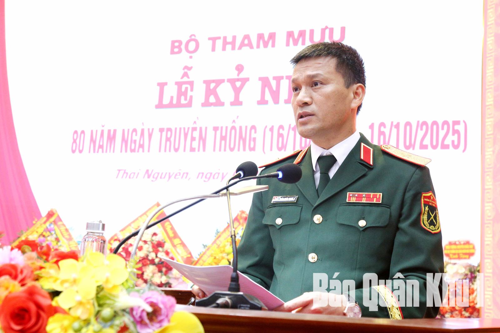 Thiếu tướng Trần Xuân Mạnh, Phó tư lệnh, Tham mưu trưởng Quân khu đọc diễn văn tại Lễ kỷ niệm.